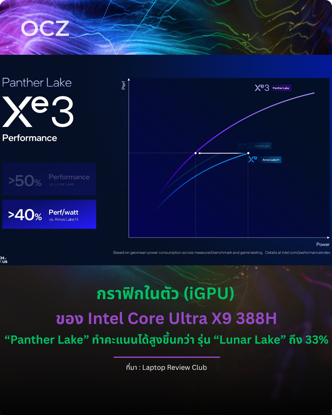เว็บไซต์ Laptop Review Club ได้เปิดเผยผลทดสอบเบื้องต้นที่ชี้ให้เห็นว่า Intel Core Ultra 300 Series ซึ่งมีโค้ดเนมว่า “Panther Lake” ถือเป็นก้าวกระโดดครั้งสำคัญของกราฟิกแบบบูรณาการ (iGPU) จากอินเทล