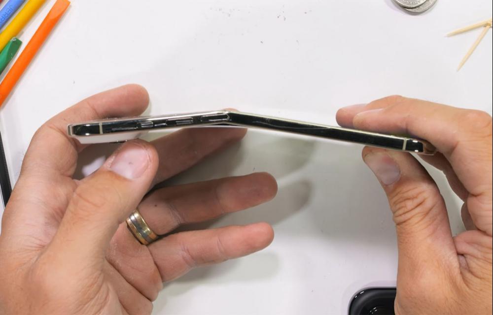 ในการทดสอบครั้งนี้ Zach จาก JerryRigEverything ได้นำเครื่องใหม่เอี่ยมมาทดลอง โดยในช่วงแรกเขาใช้แรงของตัวเองพยายามงอเครื่อง แม้รูปทรงจะบิดเบี้ยวไปบ้าง แต่ก็ไม่เกิดการแตกหักหรือเสียงดัง “แคร็ก” ตามที่หลายคนคาดไว้