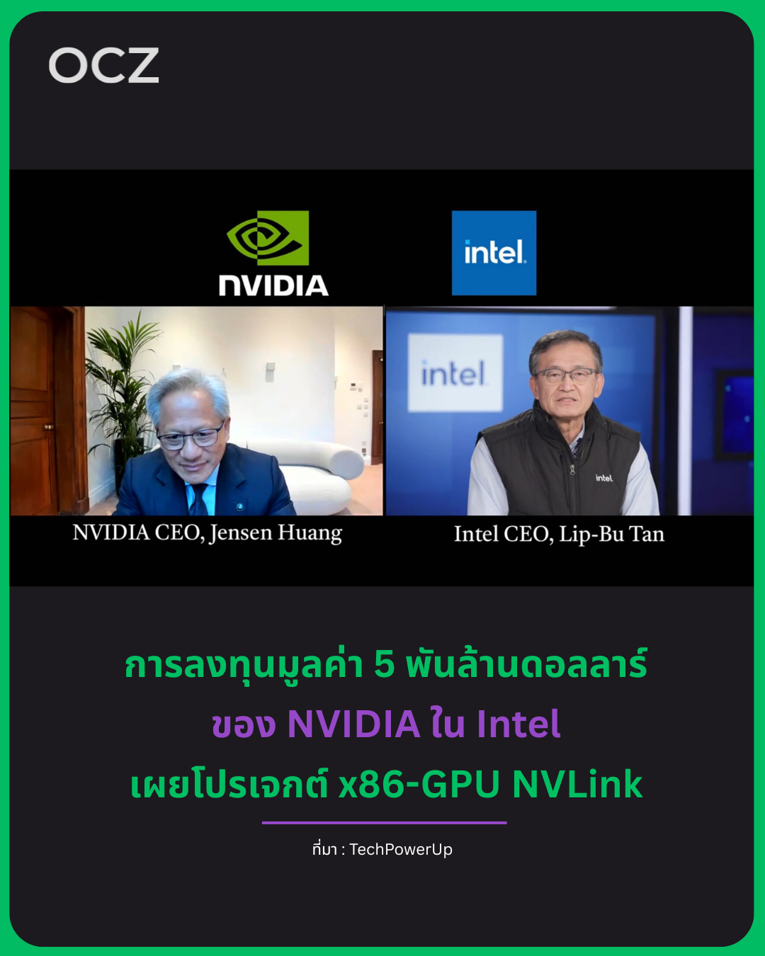 การลงทุนกะทันหันมูลค่า 5 พันล้านดอลลาร์ของ NVIDIA ใน Intel ที่เกิดขึ้นในวันนี้ มาพร้อมการเปิดเผยที่ไม่มีใครคาดคิด – ทั้งสองบริษัทได้แอบทำงานร่วมกันมาเกือบ 1 ปีแล้ว เพื่อผสาน ซีพียู x86 เข้ากับ RTX และจีพียูสำหรับดาต้าเซ็นเตอร์ ผ่าน NVLink
