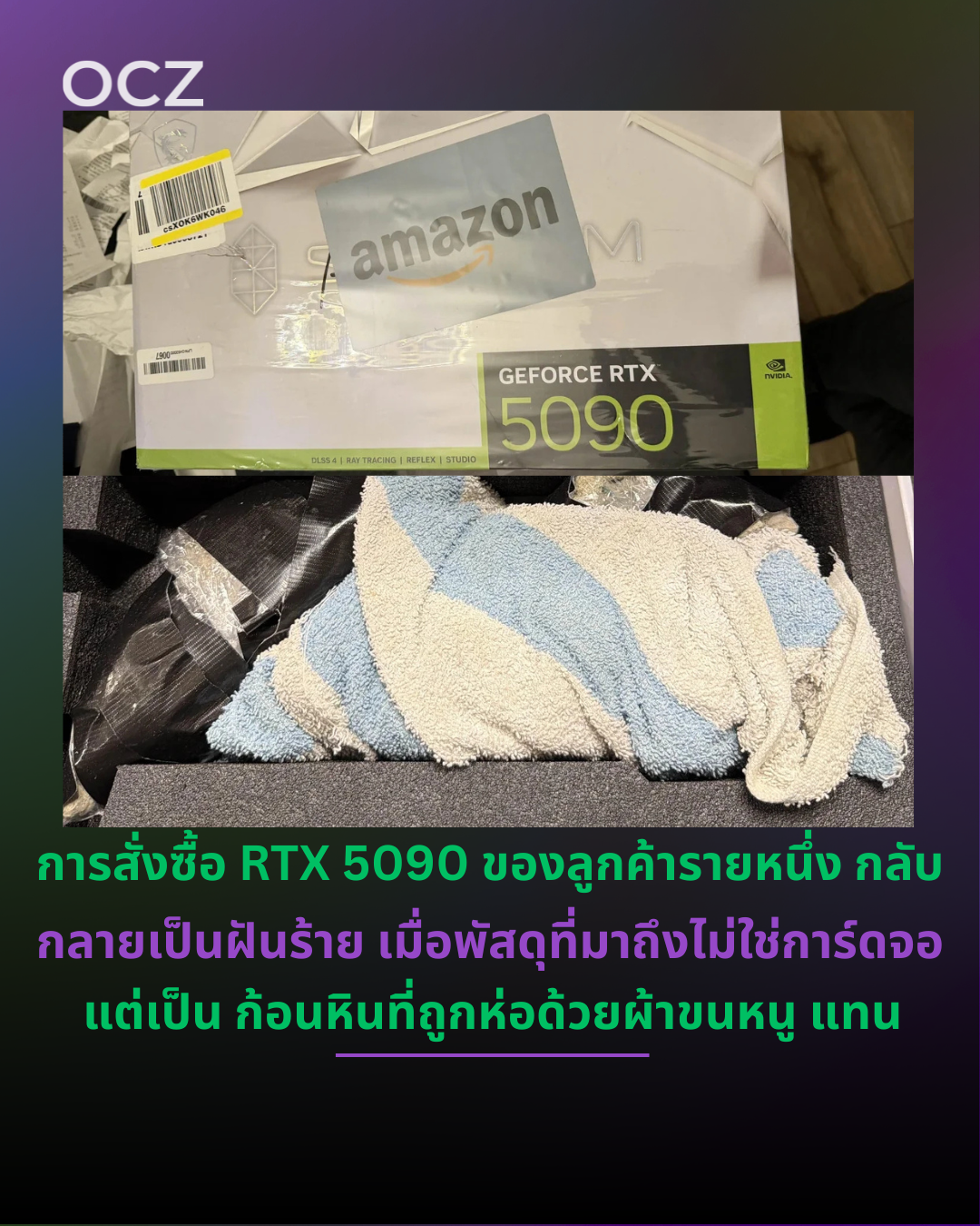 โพสต์บน Reddit รายหนึ่งอ้างว่า การสั่งซื้อ MSI GeForce RTX 5090 ผ่าน Amazon Resale กลับได้รับของเป็น ก้อนหินที่ห่อด้วยผ้าขนหนู แทนการ์ดจอ ผู้ซื้อได้แชร์ภาพถ่ายของกล่องพัสดุและสิ่งที่อยู่ภายในหลังจากเปิดกล่องแล้ว อย่างไรก็ตาม ต้องย้ำว่าผู้ซื้อยังไม่ได้แสดงหลักฐานอื่นนอกเหนือจากสิ่งที่ปรากฏในกระทู้นั้น โดยเขาระบุว่ามีวิดีโอการแกะกล่องซึ่งช่วยในการโต้แย้งกรณีพิพาท แต่ไม่ได้เผยแพร่วิดีโอดังกล่าวต่อสาธารณะ