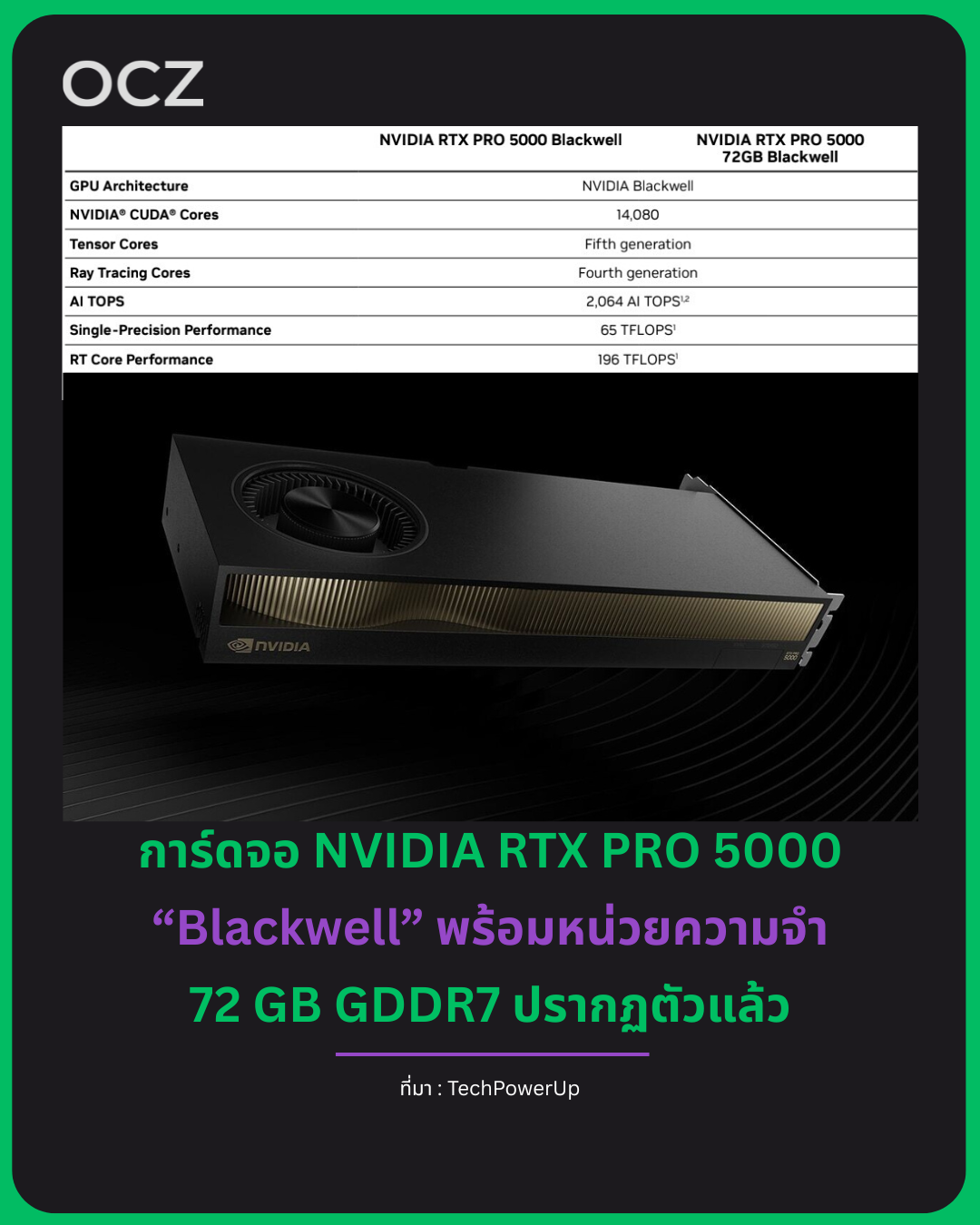 NVIDIA เปิดตัวการ์ดจอ RTX PRO 5000 “Blackwell” อย่างเป็นทางการ มาพร้อมหน่วยความจำ GDDR7 ECC ขนาด 72 GB บนหน้าเว็บไซต์ผลิตภัณฑ์ของบริษัท