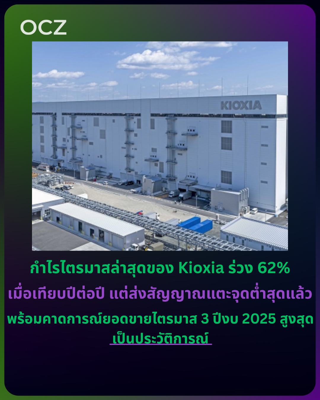 Nikkei ระบุว่า แม้ความต้องการหน่วยความจำในดาต้าเซ็นเตอร์เพื่อ AI จะพุ่งแรง แต่กำไรไตรมาสล่าสุดของ Kioxia ก็ยังต่ำกว่าที่ตลาดคาดการณ์ (คาดไว้ 47.4 พันล้านเยน) อย่างไรก็ตาม รายงานระบุว่าบริษัทอาจแตะ “จุดต่ำสุด” แล้ว หลังจากกำไรร่วงหนักถึง 74% ในไตรมาสก่อนหน้า