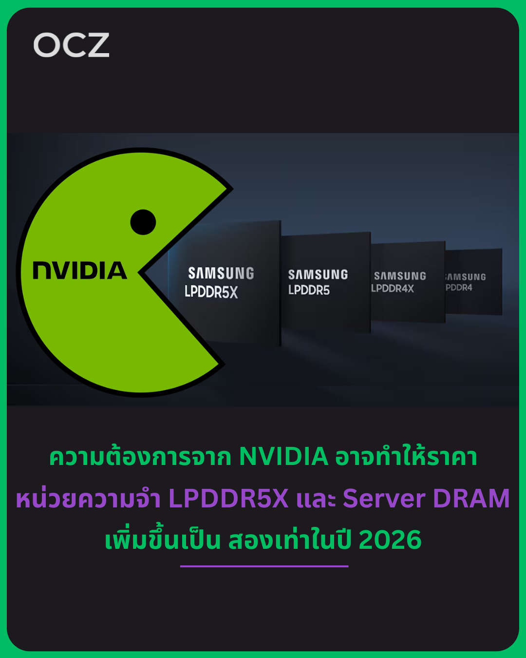รายงานระบุว่า NVIDIA มีแผนใช้ LPDDR ในระบบ AI รุ่นต่อไป ซึ่งจะทำให้ความต้องการ LPDDR ระดับเดียวกับ “ผู้ผลิตสมาร์ทโฟนรายใหญ่หนึ่งเจ้า” — สิ่งที่ซัพพลายเชน LPDDR ไม่เคยต้องรองรับมาก่อน