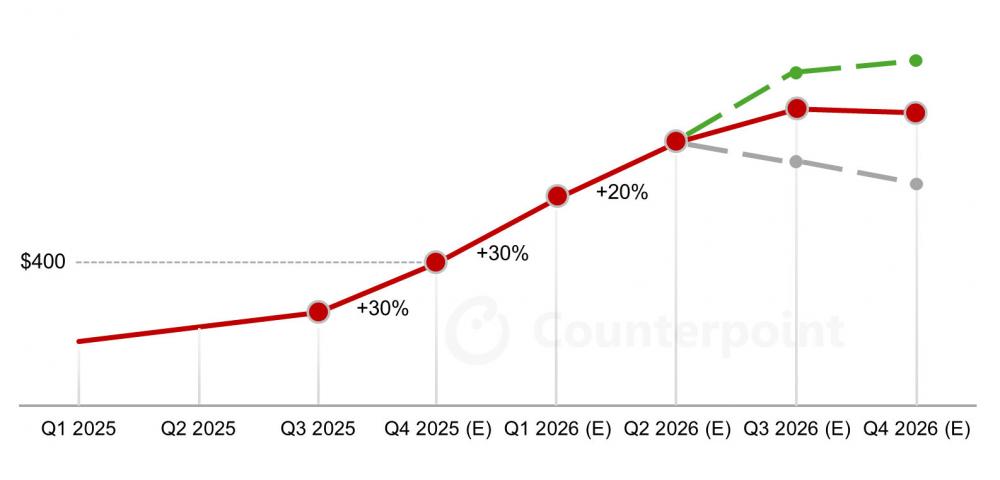 Counterpoint Research คาดว่าราคาหน่วยความจำจะยังคงพุ่งขึ้นต่อเนื่องไปจนถึงปี 2025 และยาวถึงต้นปี 2026 โดยบริษัทประเมินว่า ราคา DRAM อาจเพิ่มขึ้นอีก 30% ในไตรมาส 4 ปี 2025 และอาจเพิ่มได้อีก สูงสุด 20% ในช่วงต้นปี 2026 — ซึ่งทั้งหมดนี้เกิดขึ้นหลังจากราคา DRAM ปีนี้เพิ่มไปแล้วประมาณ 50%