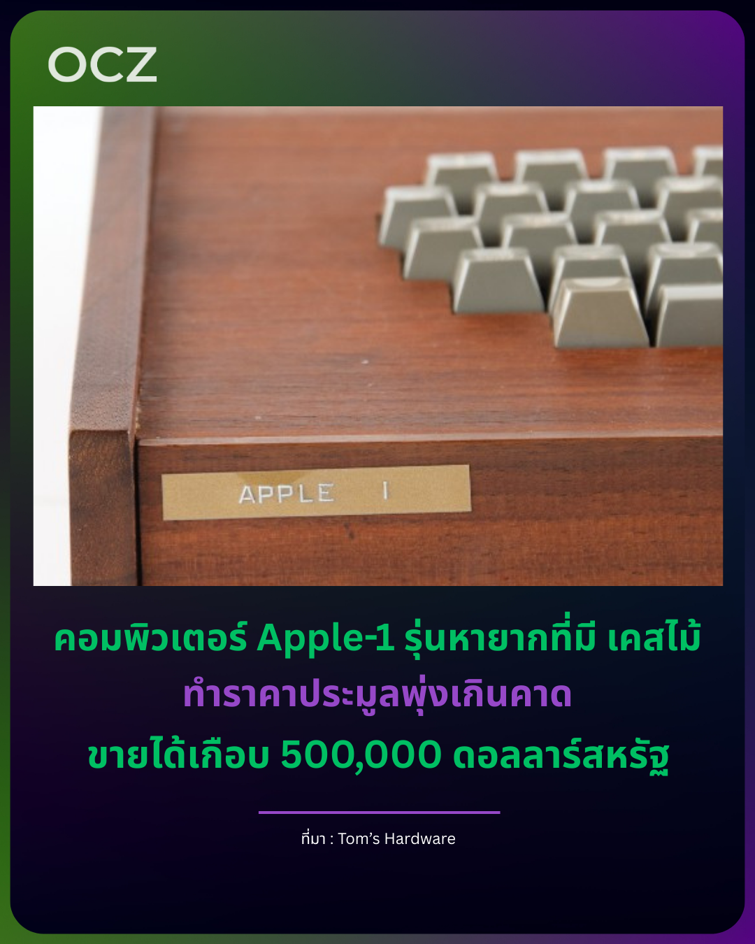 คอมพิวเตอร์ Apple-1 รุ่นหายากมาก ขายได้สูงกว่าที่ประเมินไว้ในงานประมูลที่บอสตันช่วงสุดสัปดาห์ที่ผ่านมา