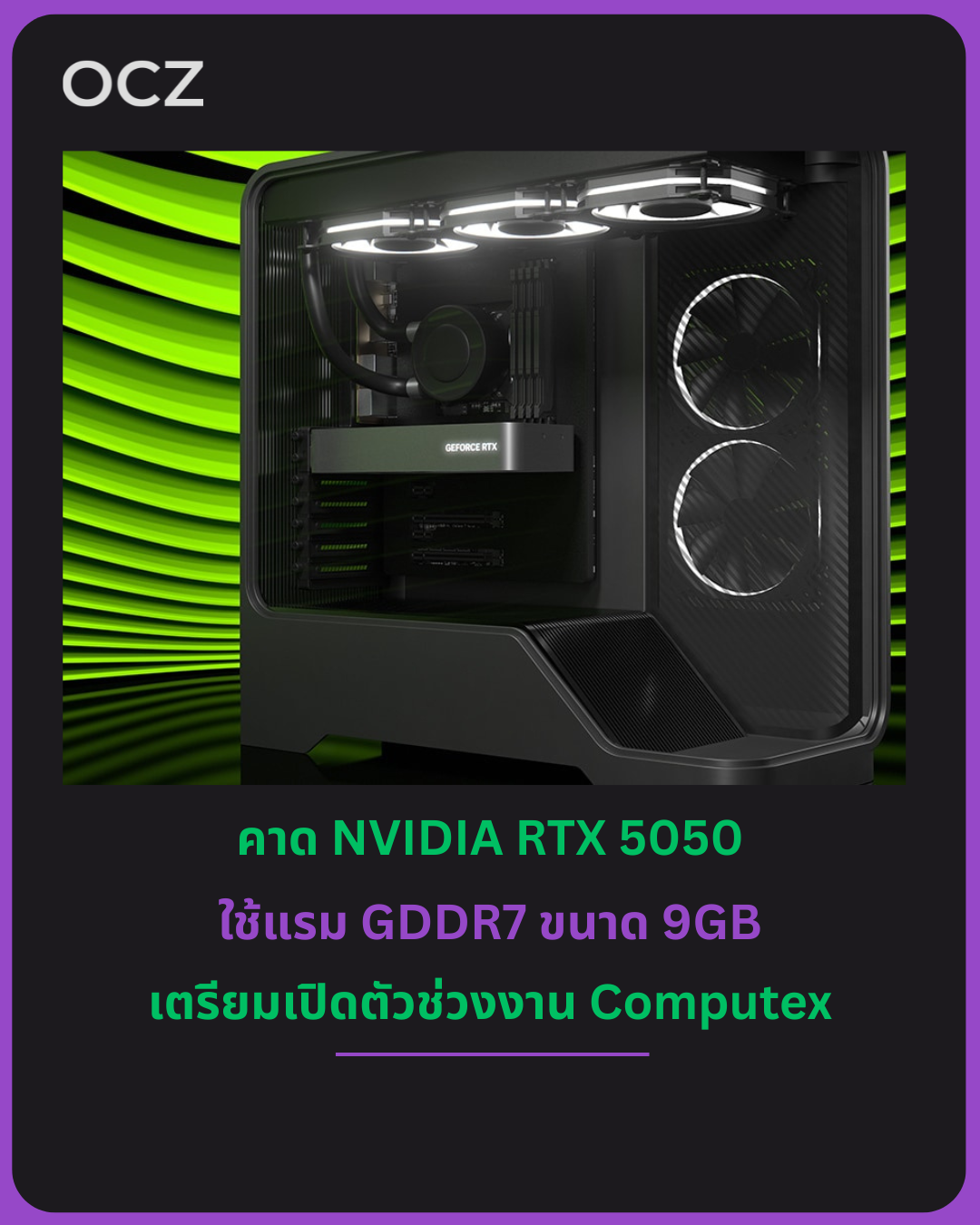 ในสถาปัตยกรรม Blackwell ของ NVIDIA เดิมที RTX 5050 เป็นการ์ดเพียงรุ่นเดียวที่ใช้หน่วยความจำ GDDR6 แต่ตอนนี้มีการยืนยันว่าเราอาจได้เห็น RTX 5050 เวอร์ชันที่ใช้ GDDR7 เปิดตัวในช่วงงาน Computex 2026 โดยสาเหตุหลักก็มาจาก ปัญหาอุปสงค์และอุปทานของ GDDR6 ในตลาด อย่างไรก็ตาม การเปลี่ยนมาใช้ GDDR7 ไม่ได้หมายความว่าหน่วยความจำจะเพิ่มจาก 8GB ไปเป็น 12GB แต่จะเพิ่มเพียง 1GB เป็น 9GB เท่านั้น
