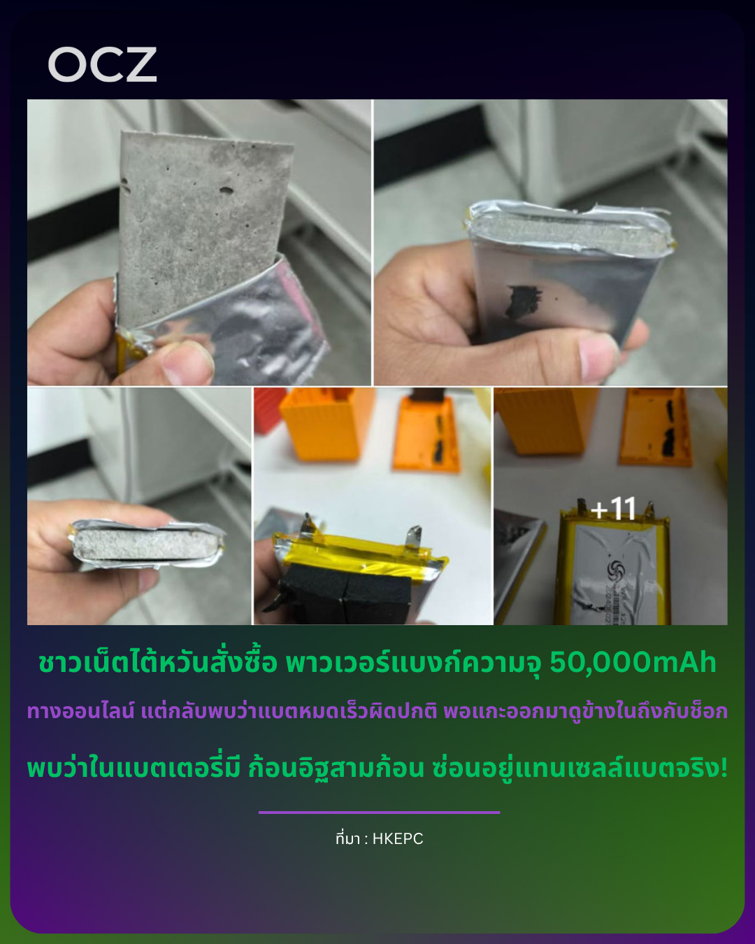 ชาวเน็ตไต้หวันสั่งซื้อ พาวเวอร์แบงก์ความจุ 50,000mAh ทางออนไลน์ แต่กลับพบว่าแบตหมดเร็วผิดปกติ พอแกะออกมาดูข้างในถึงกับช็อก — พบว่าในแบตเตอรี่มี ก้อนอิฐสามก้อน ซ่อนอยู่แทนเซลล์แบตจริง!