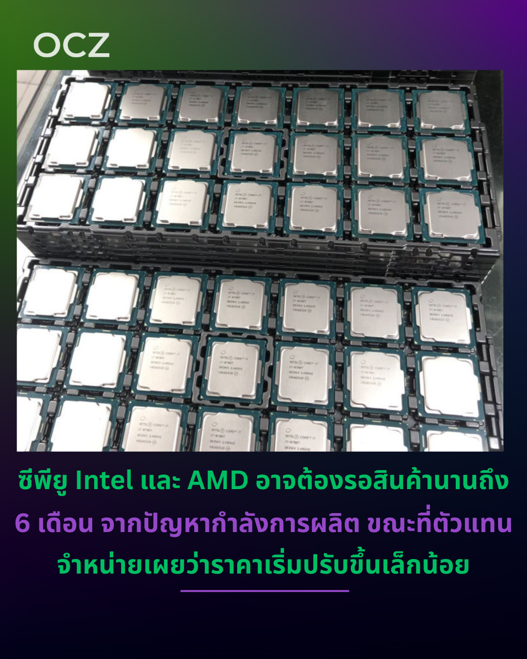 รายงานล่าสุดที่รวบรวมข้อมูลจากตัวแทนจำหน่ายซีพียูหลายแห่ง ระบุว่า ซีพียูของ Intel และ AMD กำลังเผชิญภาวะสินค้าขาดตลาด โดยระยะเวลารอสินค้าสำหรับบางรุ่น อาจนานสูงสุดถึง 6 เดือน