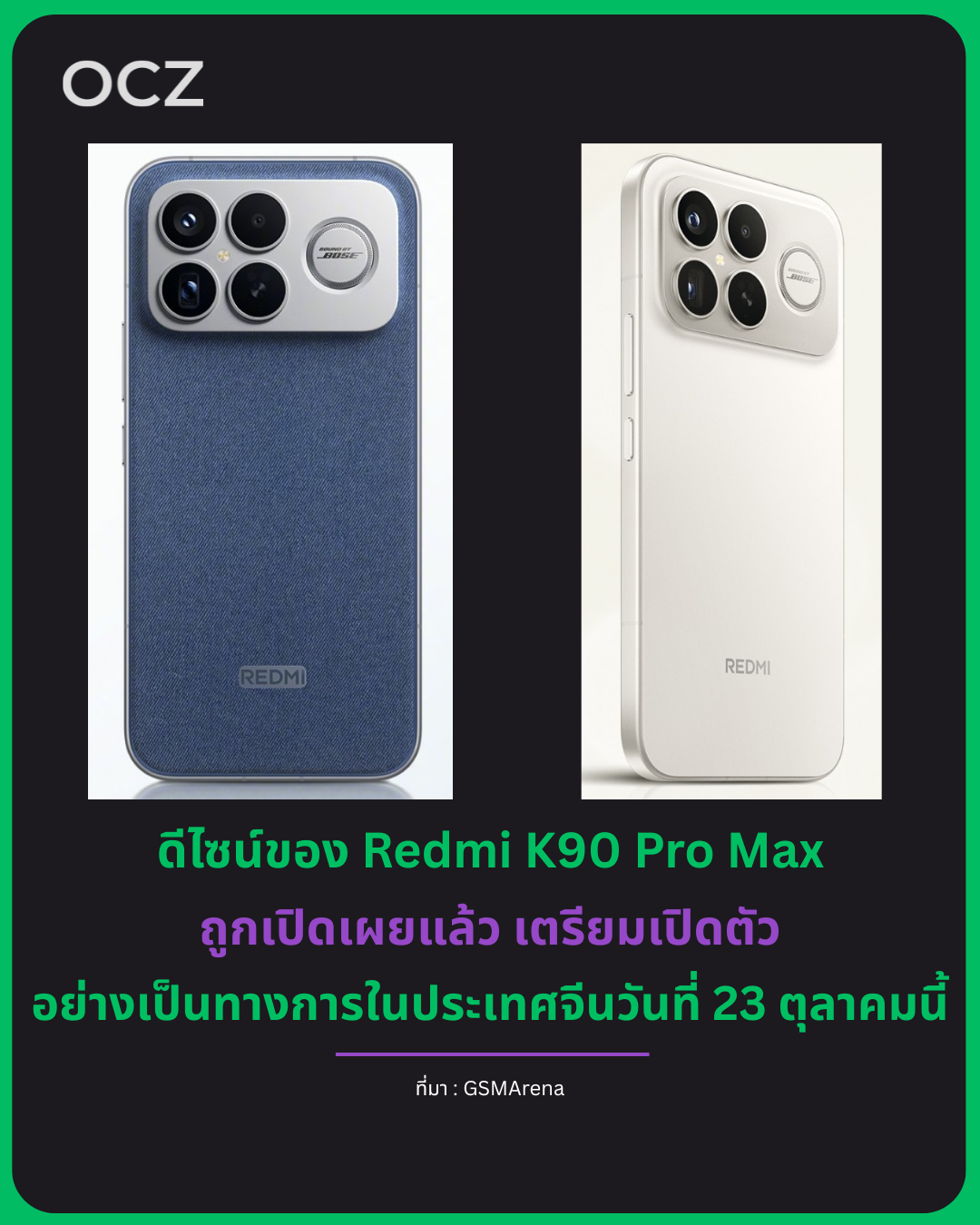 ดีไซน์ของ Redmi K90 Pro Max ถูกเปิดเผยแล้ว เตรียมเปิดตัวอย่างเป็นทางการในประเทศจีนวันที่ 23 ตุลาคมนี้