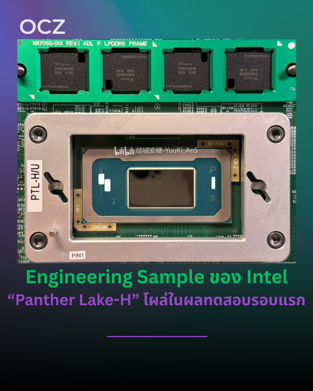 ภาพชุดใหม่ที่เพิ่งถูกเผยแพร่ออกมา แสดงให้เห็นฮาร์ดแวร์สำหรับการตรวจสอบก่อนวางจำหน่าย (pre-release validation) ของ Intel Panther Lake-H โปรเซสเซอร์โน้ตบุ๊กเจเนอเรชันถัดไปของ Intel ซึ่งถือเป็นหนึ่งในมุมมองที่ชัดที่สุดของ CPU รุ่นใหม่ในตอนนี้ ภาพดังกล่าวมาจากระบบพัฒนา (development system) ที่ใช้เมนบอร์ดอ้างอิงภายในของ Intel พร้อมตัวอย่างชิปแบบ 10 คอร์ ที่คาดว่าน่าจะมาจากตระกูล Core Ultra 3 จับคู่กับหน่วยความจำ LPDDR5X ขนาด 16 GB