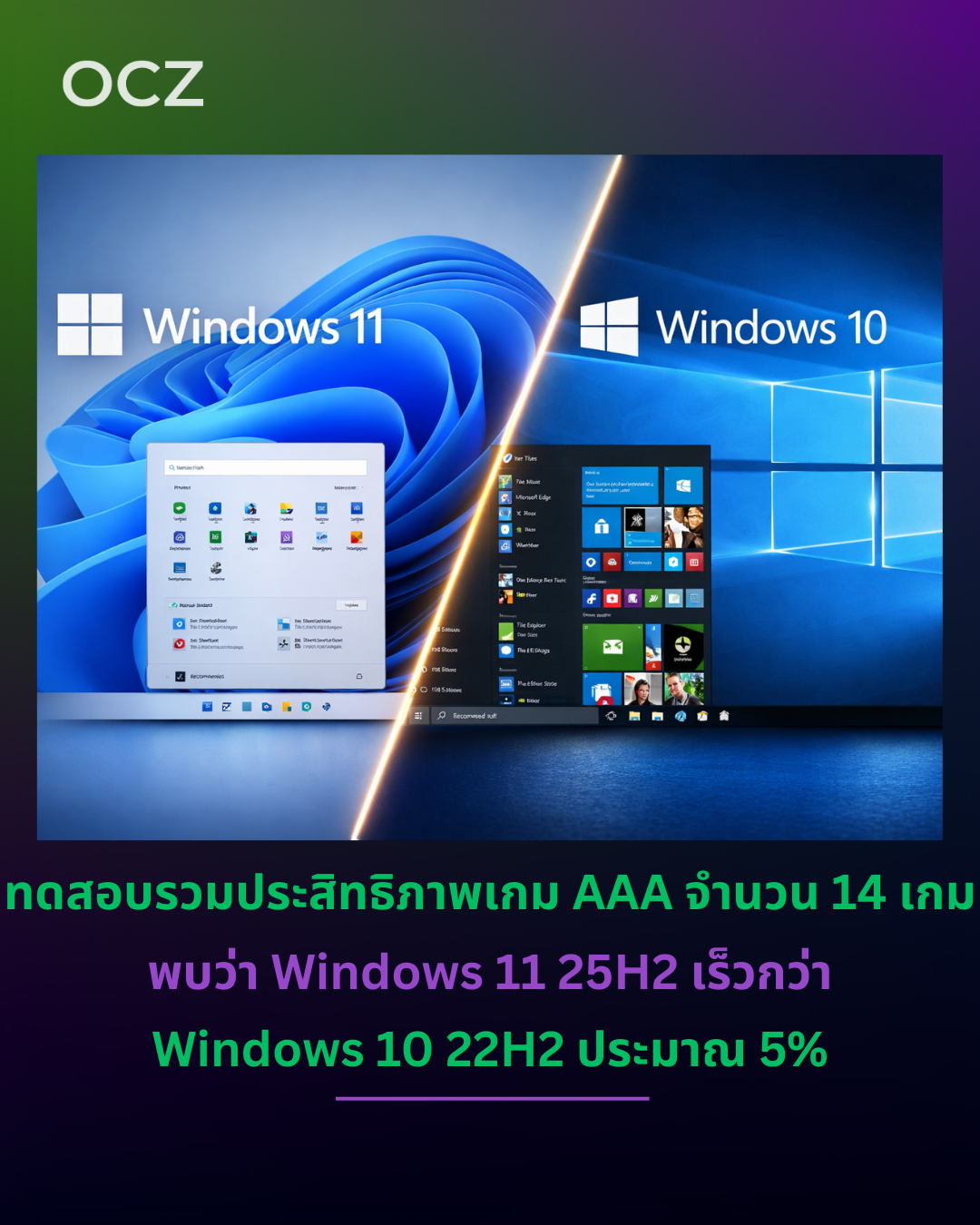 ทั้ง Windows 11 23H2 และ 24H2 ต่างก็ยังให้ประสิทธิภาพเกมต่ำกว่า Windows 10 22H2 แต่ Windows 11 25H2 กลับเป็นจุดเปลี่ยนสำคัญ Microsoft ได้ปรับจูนระบบมาเน้นด้านเกมโดยเฉพาะ ไม่ว่าจะเป็น