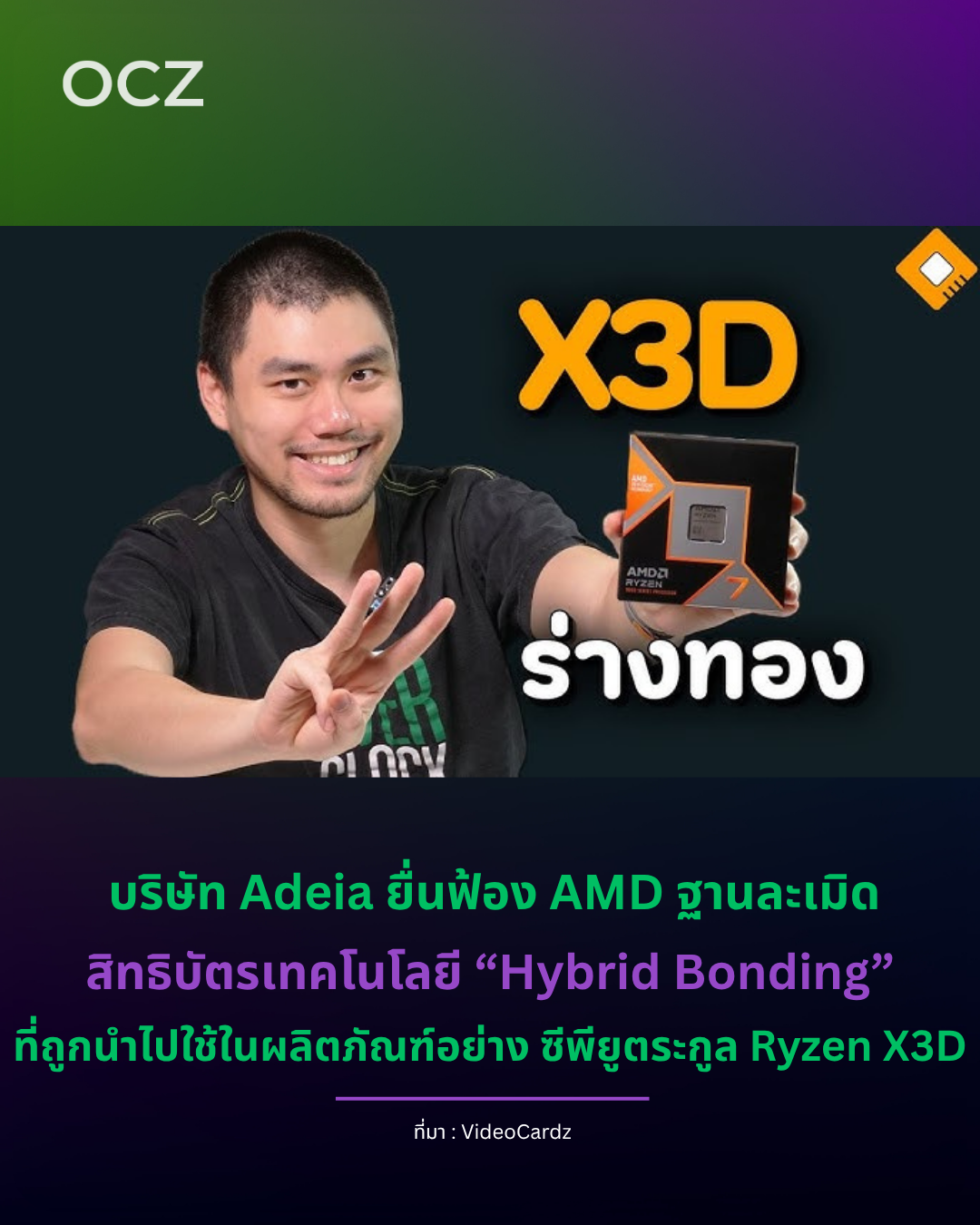 ล่าสุด Adeia ได้ยื่นฟ้อง AMD ฐานละเมิดสิทธิบัตร โดยอ้างว่า AMD ใช้เทคโนโลยีเซมิคอนดักเตอร์ของตนโดยไม่ได้รับอนุญาตมานานหลายปี การฟ้องครั้งนี้ครอบคลุมสิทธิบัตรทั้งหมด 10 ฉบับ — แบ่งเป็น 7 ฉบับเกี่ยวกับเทคโนโลยี Hybrid Bonding และอีก 3 ฉบับเกี่ยวกับกระบวนการผลิตชิพขั้นสูง (Advanced Process Node Technology) ซึ่ง Adeia ระบุว่าเทคโนโลยีเหล่านี้มีส่วนช่วยให้ AMD ก้าวขึ้นมาเป็นผู้นำตลาด และบริษัทยืนยันว่าพยายามเจรจาก่อนฟ้องร้องแล้วแต่ไม่สำเร็จ
