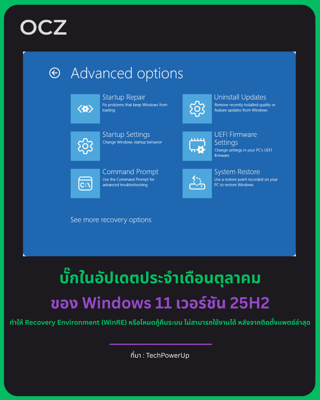 แต่ด้วยบั๊กในอัปเดตนี้ — เมื่อเมาส์และคีย์บอร์ดไม่ตอบสนองภายใน WinRE เครื่องมือกู้คืนทั้งหมดจึง ไร้ความหมายทันที เพราะผู้ใช้ไม่สามารถสั่งรีเซ็ต, รีแพร์ หรือกู้ระบบใด ๆ ได้เลย