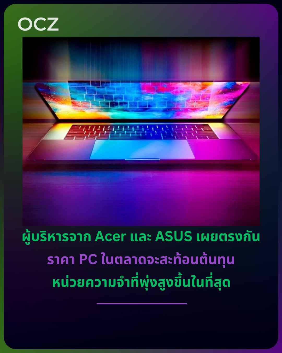 ผู้บริหารจาก ASUS และ Acer ชี้ชัด: ราคา PC จะสะท้อนต้นทุนหน่วยความจำที่พุ่งสูงขึ้นอย่างหลีกเลี่ยงไม่ได้