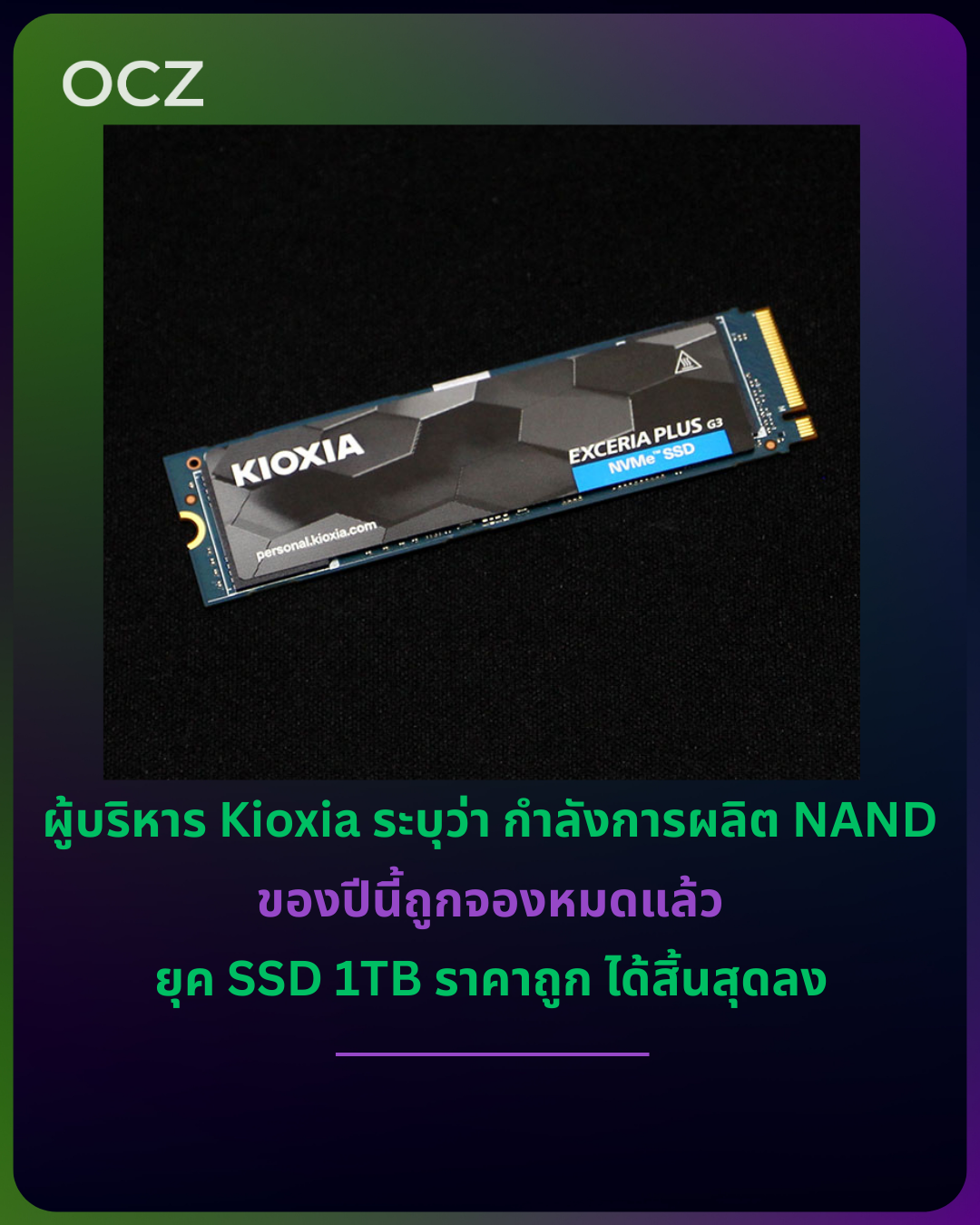 ชุนสุเกะ นากาโตะ กรรมการผู้จัดการหน่วยธุรกิจหน่วยความจำของ Kioxia ระบุว่า กำลังการผลิต NAND สำหรับปี 2026 ถูกจองล่วงหน้าไว้หมดแล้ว โดยเขาอธิบายว่าสภาพตลาด NAND ในปัจจุบันอยู่ในช่วง “สินค้าระดับไฮเอนด์ ราคาสูง” และเชื่อมโยงภาวะตึงตัวนี้กับการลงทุนด้าน AI ที่เพิ่มขึ้นอย่างต่อเนื่อง นากาโตะยังกล่าวอีกว่า การขาดแคลนเริ่มลุกลามจากความต้องการ SSD ระดับองค์กร ไปสู่ ตลาดผู้บริโภคทั่วไป แล้ว