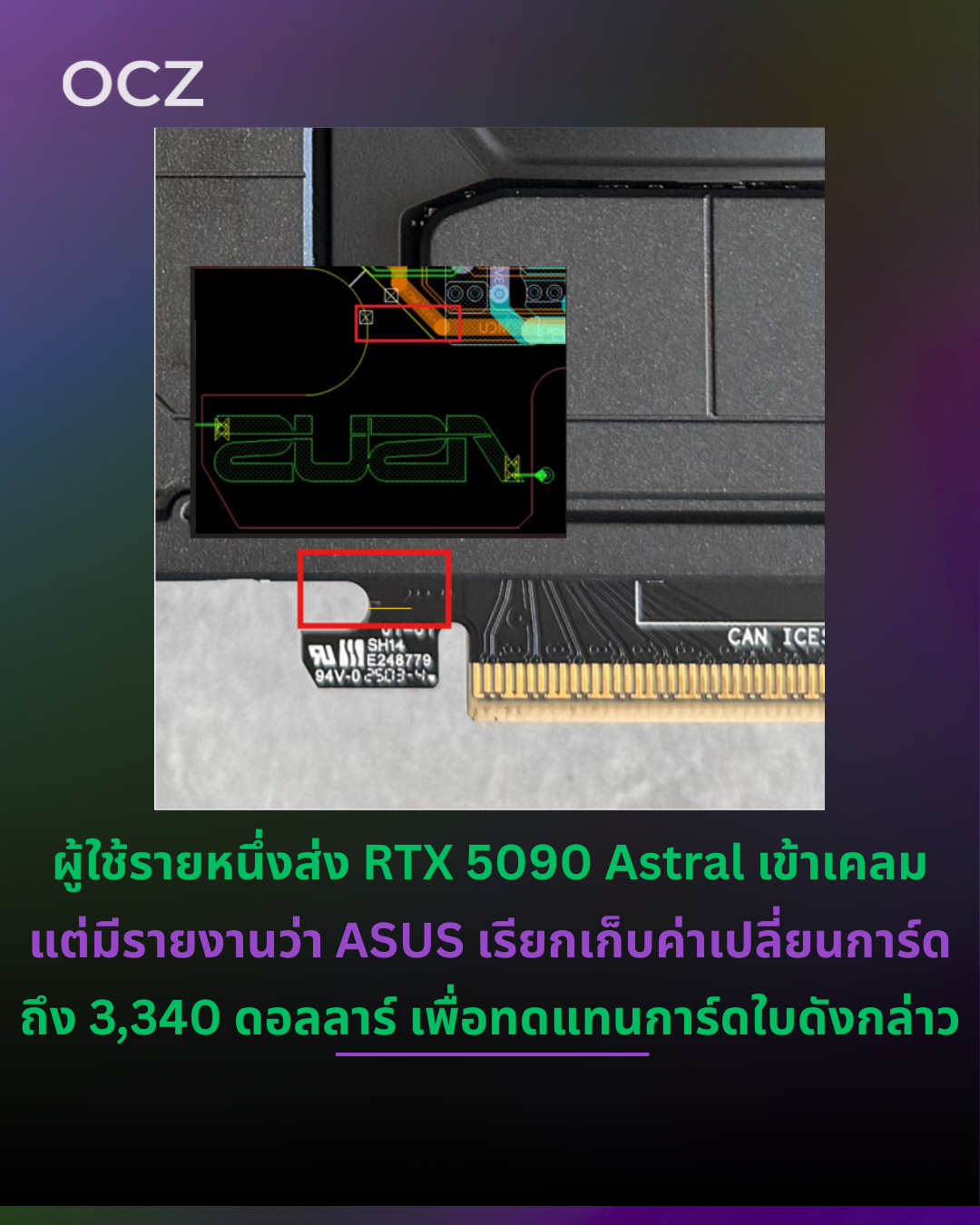 ผู้ใช้รายนี้บอกว่า ROG RTX 5090 Astral ของเขาเริ่มมีอาการจอดำและรีบูตเอง จึงส่งให้ ASUS เคลม แต่ ASUS พบ “ความผิดปกติบนพื้นผิว” บริเวณอินเทอร์เฟซ PCIe ซึ่งมองด้วยตาเปล่าแทบไม่เห็น ต้องใช้กล้องจุลทรรศน์ถึงจะสังเกตได้ ผู้ใช้ยังบอกอีกว่าไม่รู้ว่ารอยนี้มีมาก่อนหรือเกิดขึ้นหลังส่งไป เพราะตอนติดตั้งก็ไม่เห็นอะไรผิดปกติ