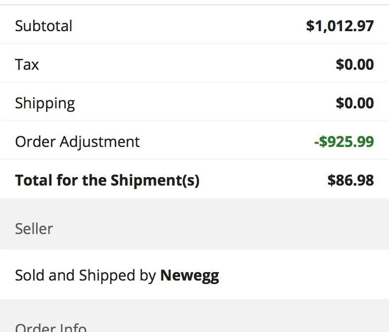 ผู้ใช้ระบุว่า Newegg “ยอมให้ดีลนี้ผ่านไป” แม้ว่าร้านค้าจะสามารถยกเลิกคำสั่งซื้อได้ก็ตาม