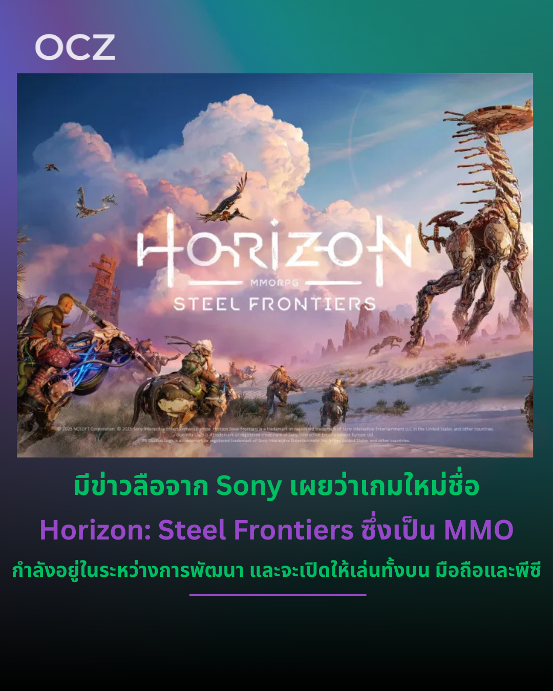ดูเหมือนว่า Sony กำลังวางแผนเปิดตัวเกม MMO ใหม่ ที่มีฉากหลังอยู่ในจักรวาลของ Horizon ตามข้อมูลจากวิดีโอที่สื่อ The Verge เผยแพร่ล่าสุด วิดีโอดังกล่าวมีความยาวประมาณ 10 นาที แสดงให้เห็นทั้ง ภาพเกมเพลย์และฉากคัตซีน สลับกับการสัมภาษณ์ทีมพัฒนา เกมนี้คาดว่าจะใช้ชื่อว่า Horizon: Steel Frontiers และจะเปิดให้เล่นบน พีซี, iOS และ Android โดยพัฒนาโดยความร่วมมือระหว่าง Sony และ NCSoft ที่น่าสนใจก็คือ ในสื่อโปรโมตที่ The Verge อ้างถึงนั้น ไม่มีการพูดถึงเวอร์ชัน PS5 รวมถึง ยังไม่ระบุวันวางจำหน่ายหรือราคา แต่อย่างใด
