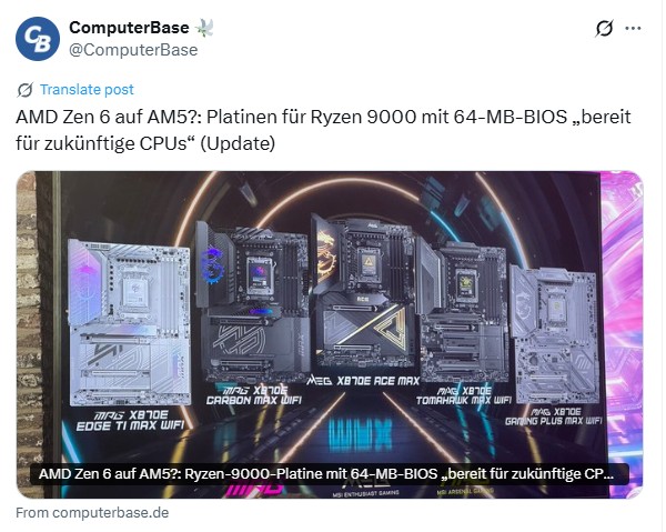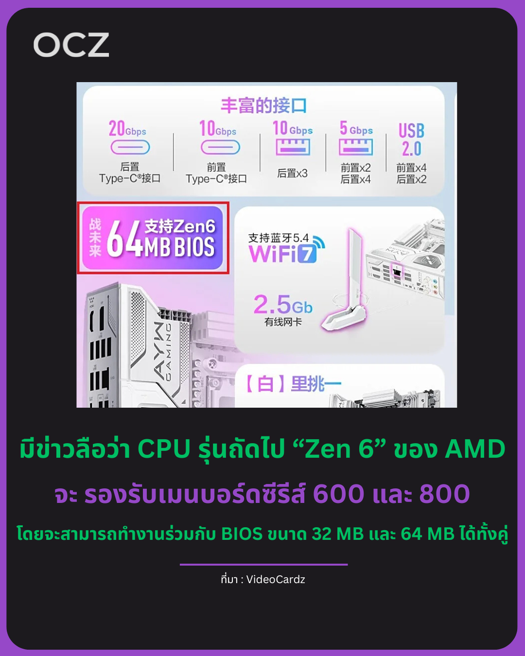 ข่าวดีคือ มีรายงานว่า ทั้งเมนบอร์ด AM5 ที่ใช้ BIOS 32 MB และ 64 MB จะสามารถรองรับซีพียู Zen 6 ได้ทั้งหมด ดังนั้นผู้ใช้ไม่จำเป็นต้องเปลี่ยนเมนบอร์ดใหม่