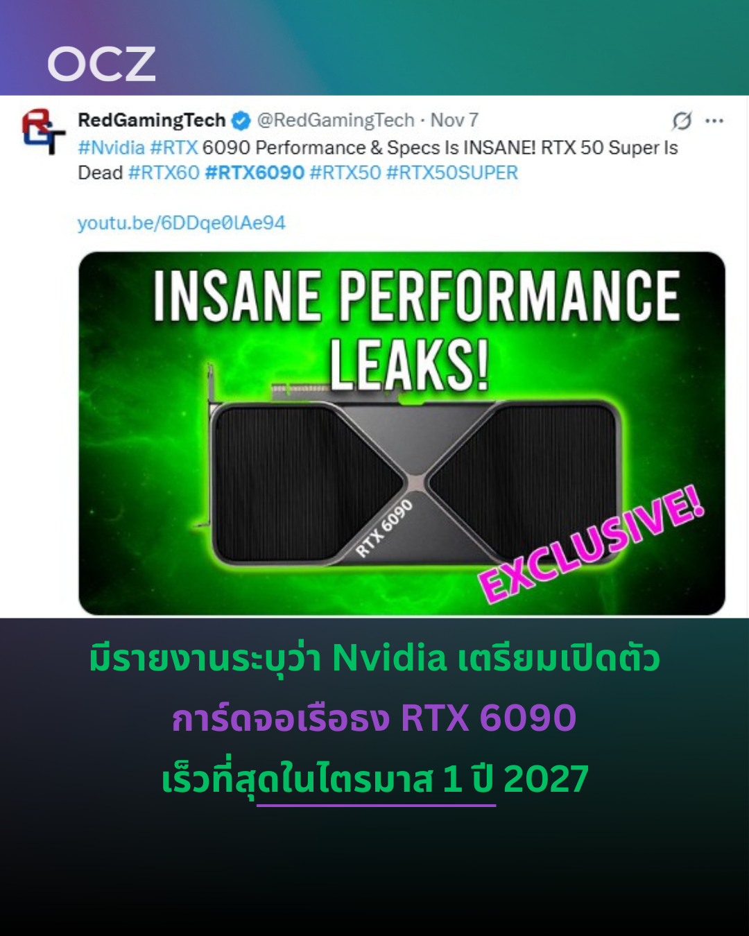 ในวิดีโอล่าสุดของช่อง YouTube Red Gaming Tech เปิดเผยว่า Nvidia ได้เริ่มวางแผนกราฟิกการ์ดเจเนอเรชันถัดไป GeForce RTX 60 Series แล้ว โดยรุ่นเรือธงอย่าง RTX 6090 อาจเปิดตัวได้เร็วสุดในไตรมาสแรกของปี 2027
