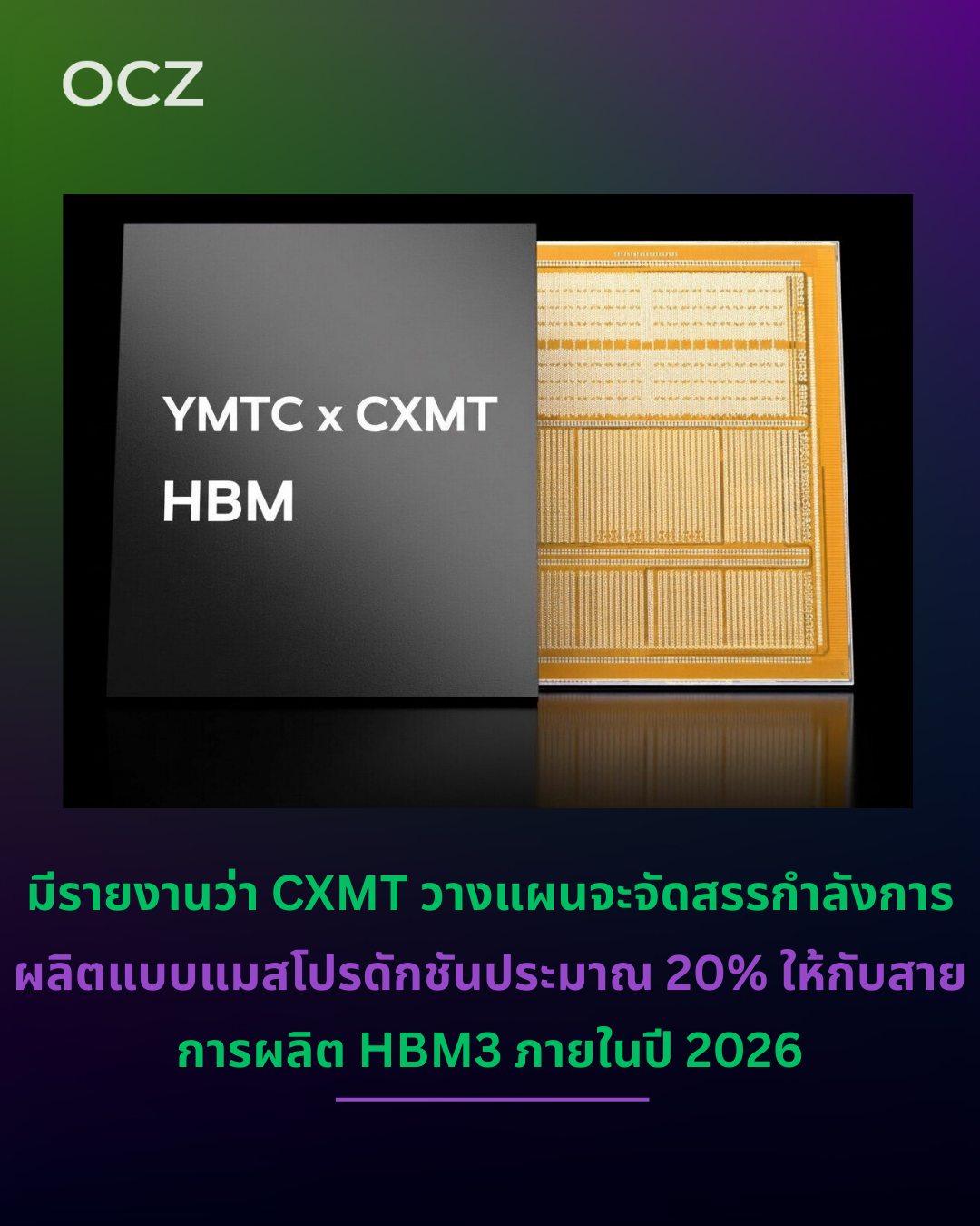 ข้อมูลวงในยังเสริมอีกว่า CXMT มีแผนกำลังการผลิต HBM3 ราว 60,000 เวเฟอร์ต่อเดือน ซึ่งตัวเลขดังกล่าวคิดเป็นประมาณ 20% ของกำลังการผลิตรวมทั้งหมดที่ราว 300,000 เวเฟอร์ต่อเดือน โดยอย่างน้อยในช่วงปี 2026