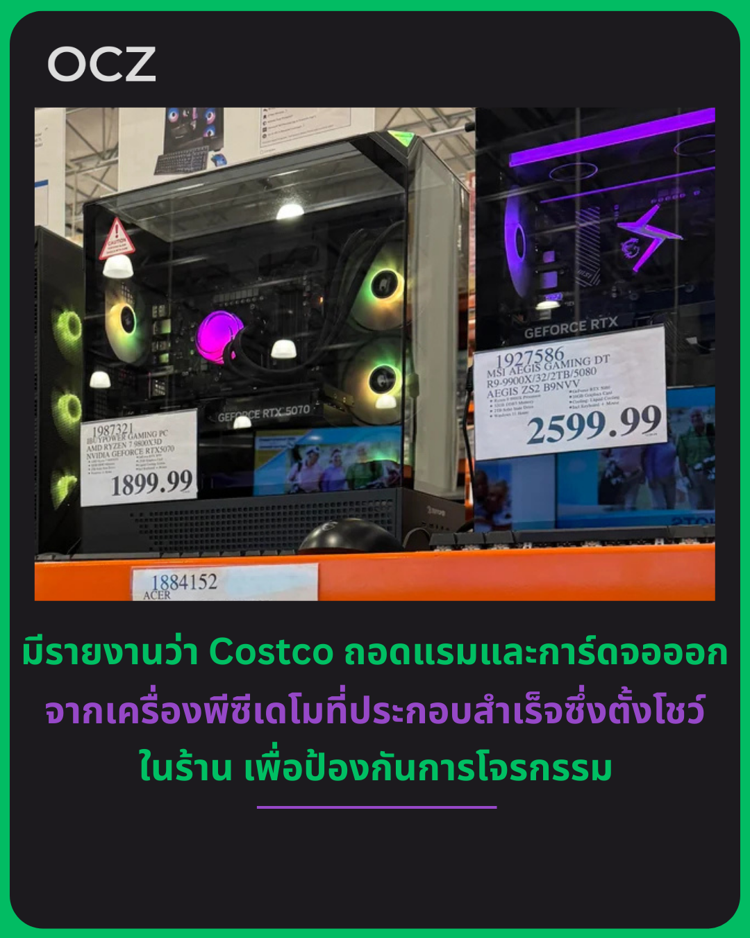 โพสต์ล่าสุดบน Reddit อ้างว่า Costco เริ่มถอดแรมออกจากเครื่องพีซีเดโมที่ตั้งโชว์ในร้าน หลังเกิดเหตุมีคน “หยิบ” แรมออกไปจากเครื่องสาธิต โดยแนวทางนี้คือการเก็บชิ้นส่วนไว้หลังร้าน เพื่อลดโอกาสการโจรกรรมซ้ำ