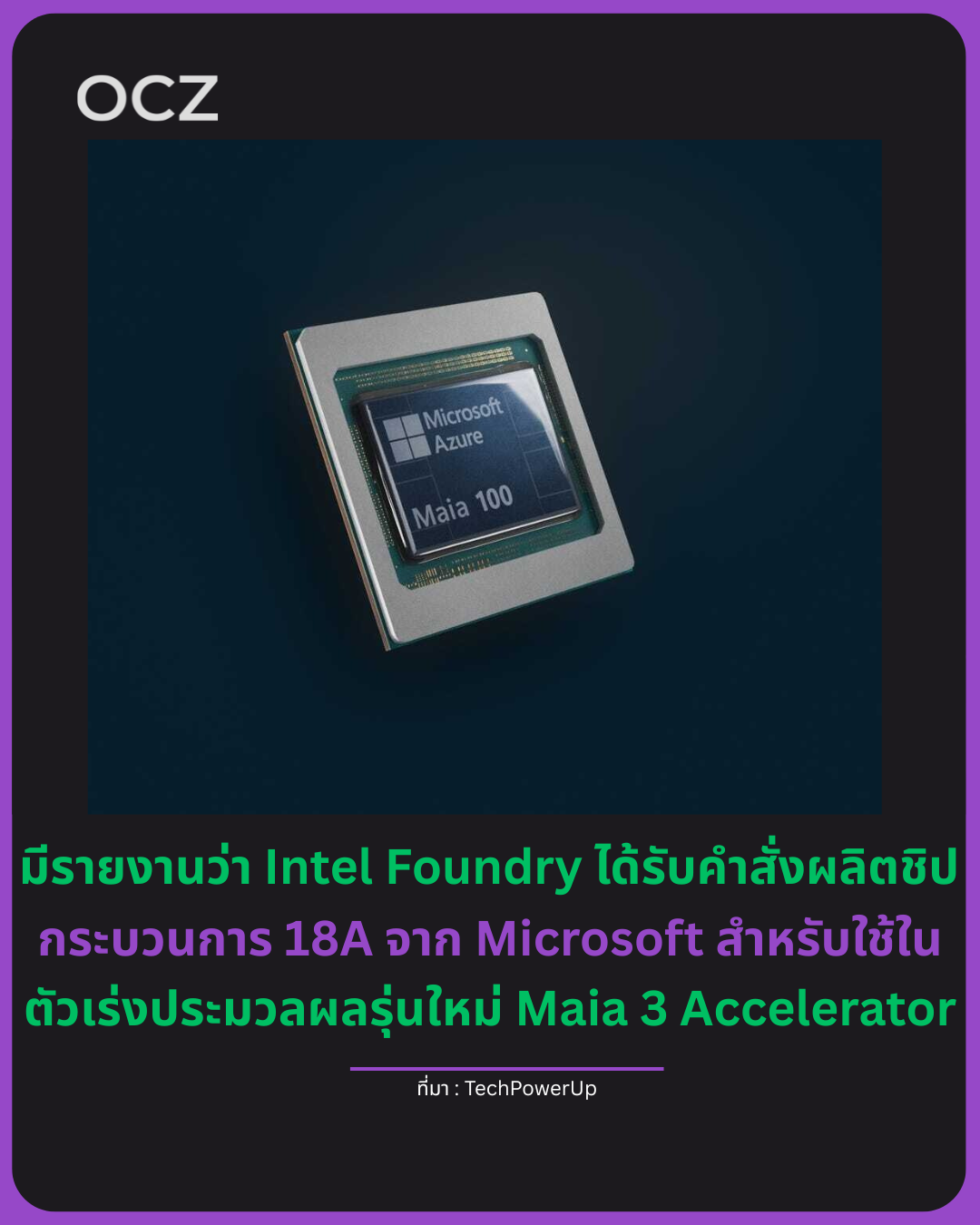 ตามรายงานของ Charlie Demerjian จาก SemiAccurate (เผยแพร่โดยผู้ใช้ X @Jukanlosreve) ระบุว่า Microsoft จะให้ Intel ผลิตชิปรุ่นใหม่ “Maia 3” รหัสพัฒนา “Griffin” ด้วยกระบวนการผลิต 18A หรือ 18A-P ของ Intel