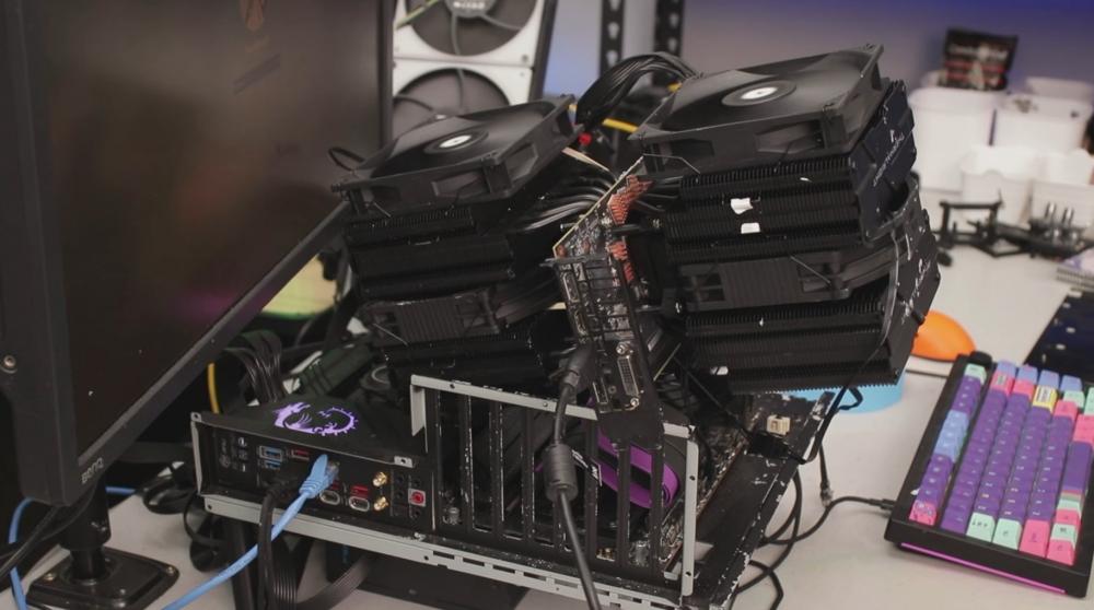 จุดพีกของการทดลองคือการเอา ฮีตซิงก์ซีพียูแบบทาวเวอร์ มาติดลงบนการ์ดจอโดยตรง