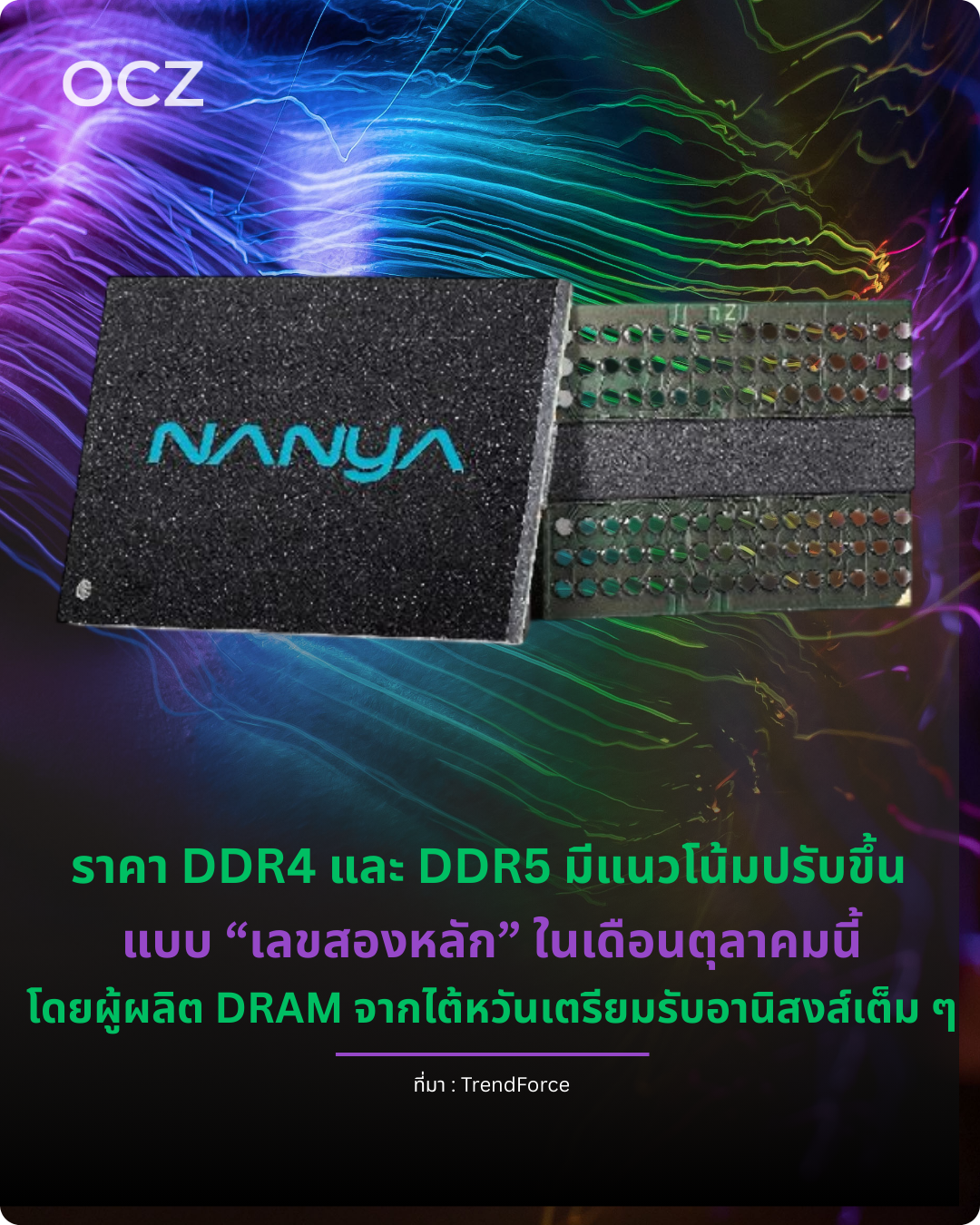 Nanya Technology ยังเผยในรายงานผลประกอบการล่าสุดว่าได้ปรับการผลิตให้สอดคล้องกับความต้องการ DDR4 โดยปัจจุบัน DDR4 และ LPDDR4 คิดเป็น 50%+ ของยอดส่งออกทั้งหมด ส่วน DDR3/LPDDR3 อยู่ที่ 20% และที่เหลือเป็น DDR5
