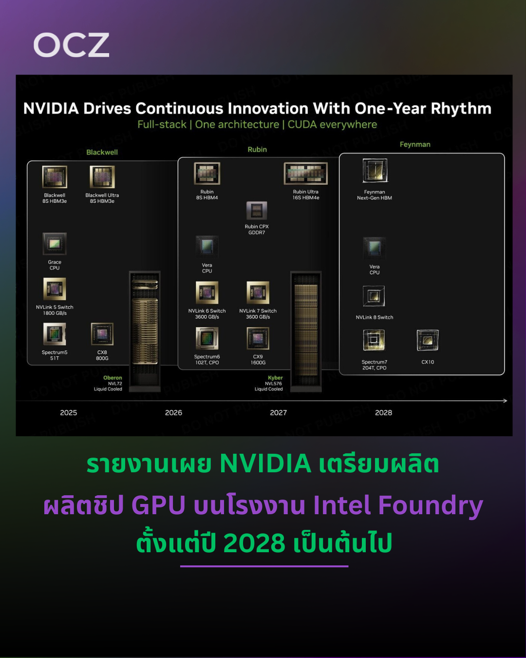 รายงานระบุว่า GPU AI รุ่นถัดไปของ NVIDIA ที่ใช้โค้ดเนม “Feynman” จะมีการใช้กระบวนการผลิตจาก Intel Foundry บางส่วน โดย NVIDIA เพิ่งเข้าถือหุ้น 5% ใน Intel และกำลังพิจารณาใช้กำลังการผลิตของ Intel Foundry อย่างจริงจัง