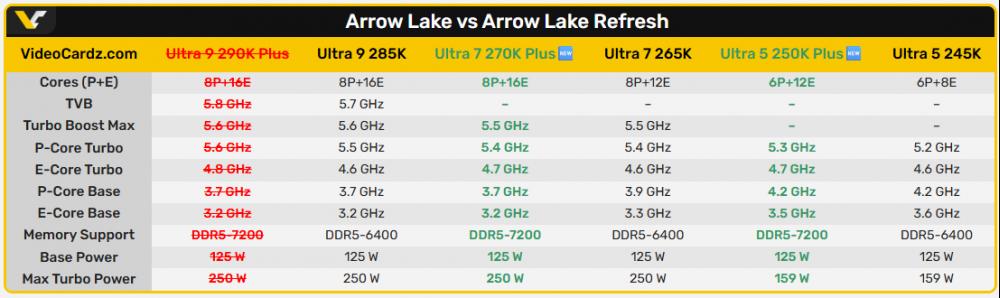 ก่อนหน้านี้เพียงไม่กี่วัน มีผลทดสอบ Geekbench ของ Core Ultra 9 290K Plus หลุดออกมา ซึ่งแสดงประสิทธิภาพที่ดีขึ้นราว 10% เมื่อเทียบกับ 285K แต่เมื่อรุ่นนี้ถูกยกเลิกไป Arrow Lake Refresh ที่เหลืออยู่อาจให้ประสิทธิภาพเพิ่มขึ้นน้อยลง เนื่องจาก 270K Plus มีความเร็ว Boost ของทั้ง P-Core และ E-Core ต่ำกว่าประมาณ 100–200 MHz