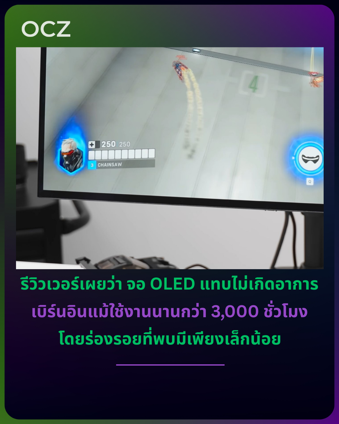 จอที่ใช้ทดสอบคือ LG OLED ขนาด 32 นิ้ว แบบ Dual-Mode โดยเปิดฟีเจอร์ป้องกันเบิร์นอินของจอไว้ครบถ้วนตามค่าเริ่มต้นทั้งหมด