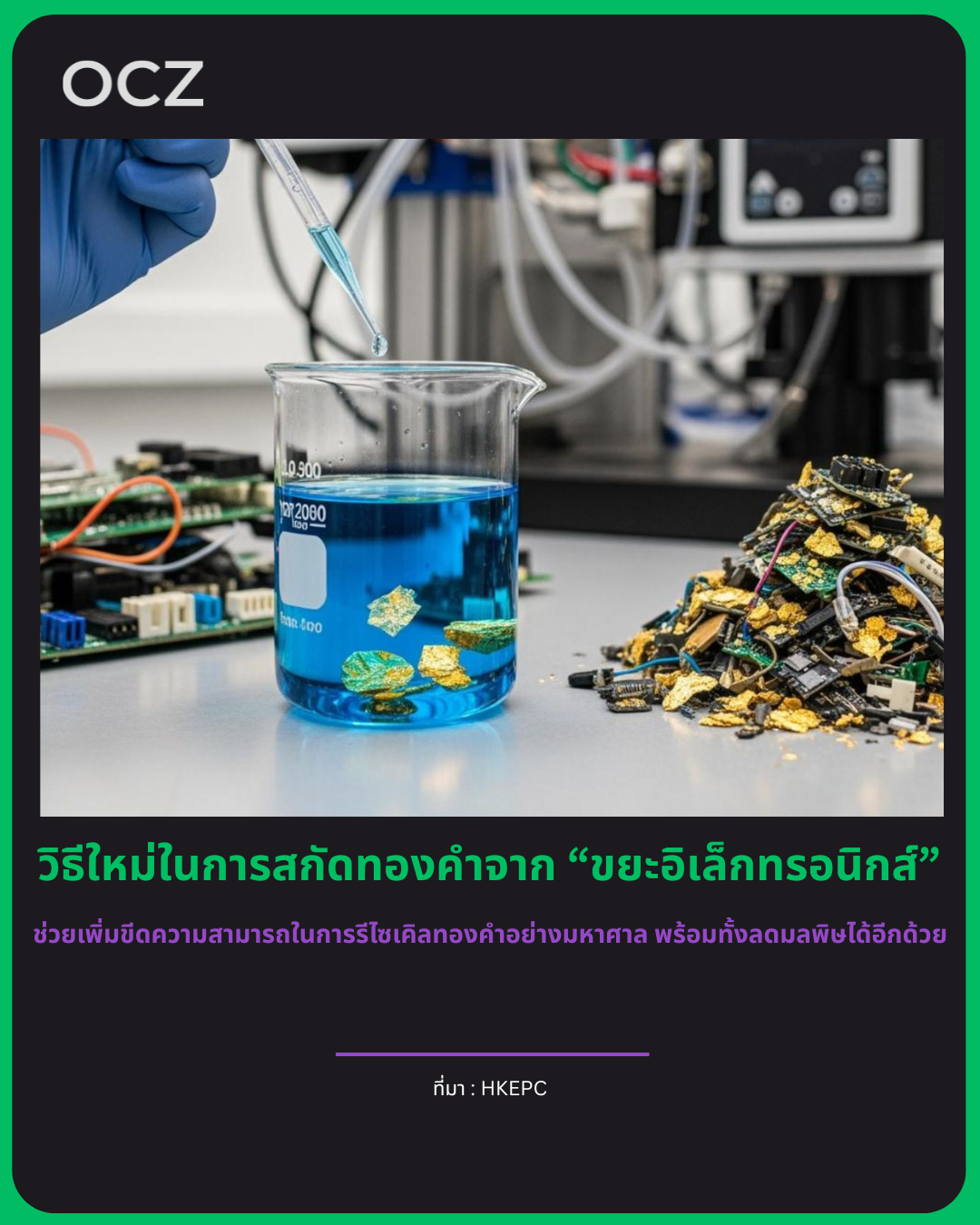 ในปี 2022 โลกผลิต “ขยะอิเล็กทรอนิกส์” มากถึง 62 ล้านตัน หรือเทียบเท่ากับรถขยะกว่า 1.5 ล้านคัน และคาดว่าในปี 2030 ปริมาณจะพุ่งแตะ 82 ล้านตัน ภายในขยะเหล่านี้ เช่น คอมพิวเตอร์และสมาร์ตโฟน มักมีทองคำและโลหะมีค่าซ่อนอยู่ แต่มีเพียงไม่ถึง 1 ใน 4 ที่ถูกเก็บรวบรวมและรีไซเคิลอย่างถูกต้อง