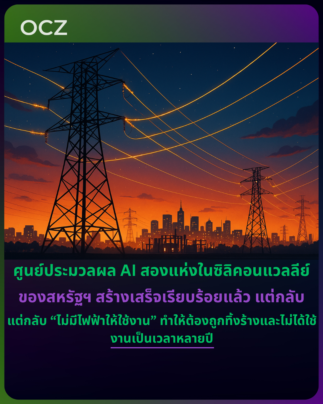 สื่อต่างประเทศรายงานว่า ศูนย์ประมวลผล AI สองแห่งที่สร้างขึ้นเพื่อตอบรับยุคของปัญญาประดิษฐ์ กำลังประสบปัญหาใหญ่ แม้ตัวอาคารจะสร้างเสร็จสมบูรณ์แล้ว แต่กลับ “ไม่มีไฟฟ้าให้ใช้งาน” โดยศูนย์ทั้งสองแห่งตั้งอยู่ที่เมืองซานตาแคลารา รัฐแคลิฟอร์เนีย ได้แก่ Digital Realty SJC37 และ Stack Infrastructure SVY02A ซึ่งมีแนวโน้มสูงมากว่าจะต้องถูก “ปล่อยทิ้งไว้เฉย ๆ” อีกหลายปี