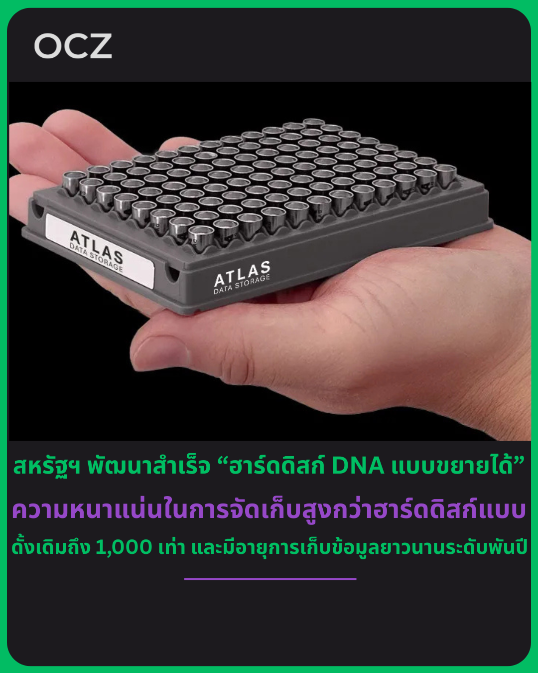 Atlas Data Storage สตาร์ทอัพด้านเทคโนโลยีจัดเก็บข้อมูลด้วย DNA เปิดตัวบริการเชิงพาณิชย์ครั้งแรก “Atlas Eon 100” ที่ถูกอ้างว่าเป็น “โซลูชันจัดเก็บข้อมูลด้วย DNA แบบปรับขยายได้เป็นรายแรกของโลก”