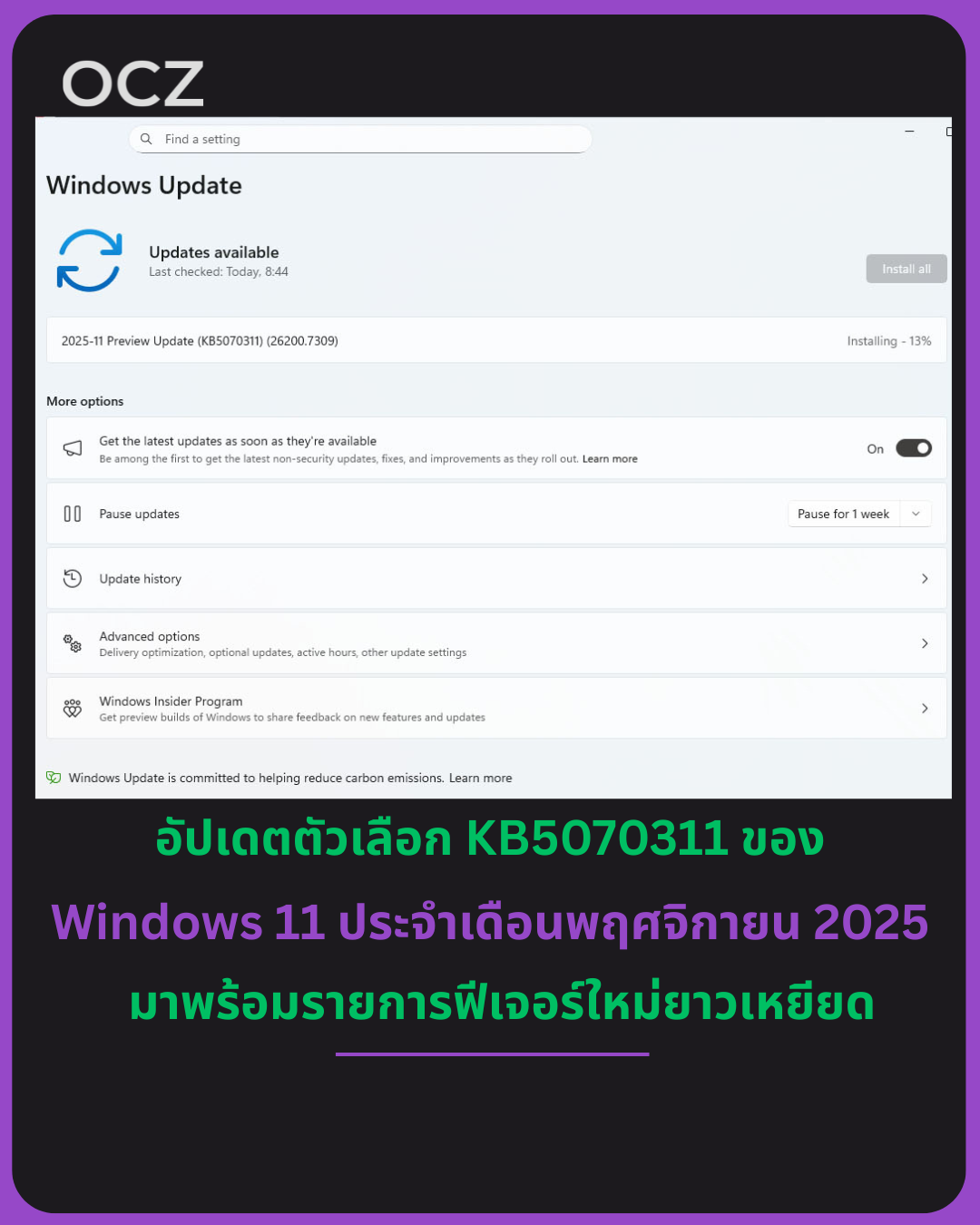 Microsoft ได้ปล่อยอัปเดตตัวเลือกแบบไม่มีความปลอดภัย (Non-security preview update) หรือที่เรียกว่า C-release สำหรับ Windows 11 23H2 ไปแล้วเมื่อเดือนที่แล้วภายใต้ KB5070312 และถึงแม้เดือนจะจบไปแล้ว แต่ล่าสุดบริษัทก็ได้ปล่อย C-release สำหรับ Windows 11 เวอร์ชัน 25H2 และ 24H2 ตามมาด้วยเช่นกัน อัปเดตแบบสะสม (cumulative updates) ใหม่มาในรหัส KB5070311 พร้อมเลขบิลด์ 26200.7309 สำหรับ 25H2 และ 26100.7309 สำหรับ 24H2