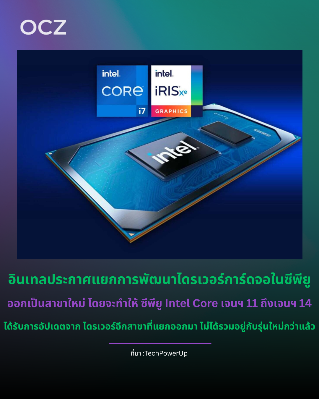อินเทลถูกเปิดเผยว่ามีการ แยกสาขาไดรเวอร์การ์ดจอออนบอร์ด (iGPU) สำหรับซีพียูรุ่นเก่าออกมาแล้ว โดย ซีพียู Intel Core Gen 11–14 จะอยู่บนสาขาไดรเวอร์แยกต่างหากจากรุ่นใหม่