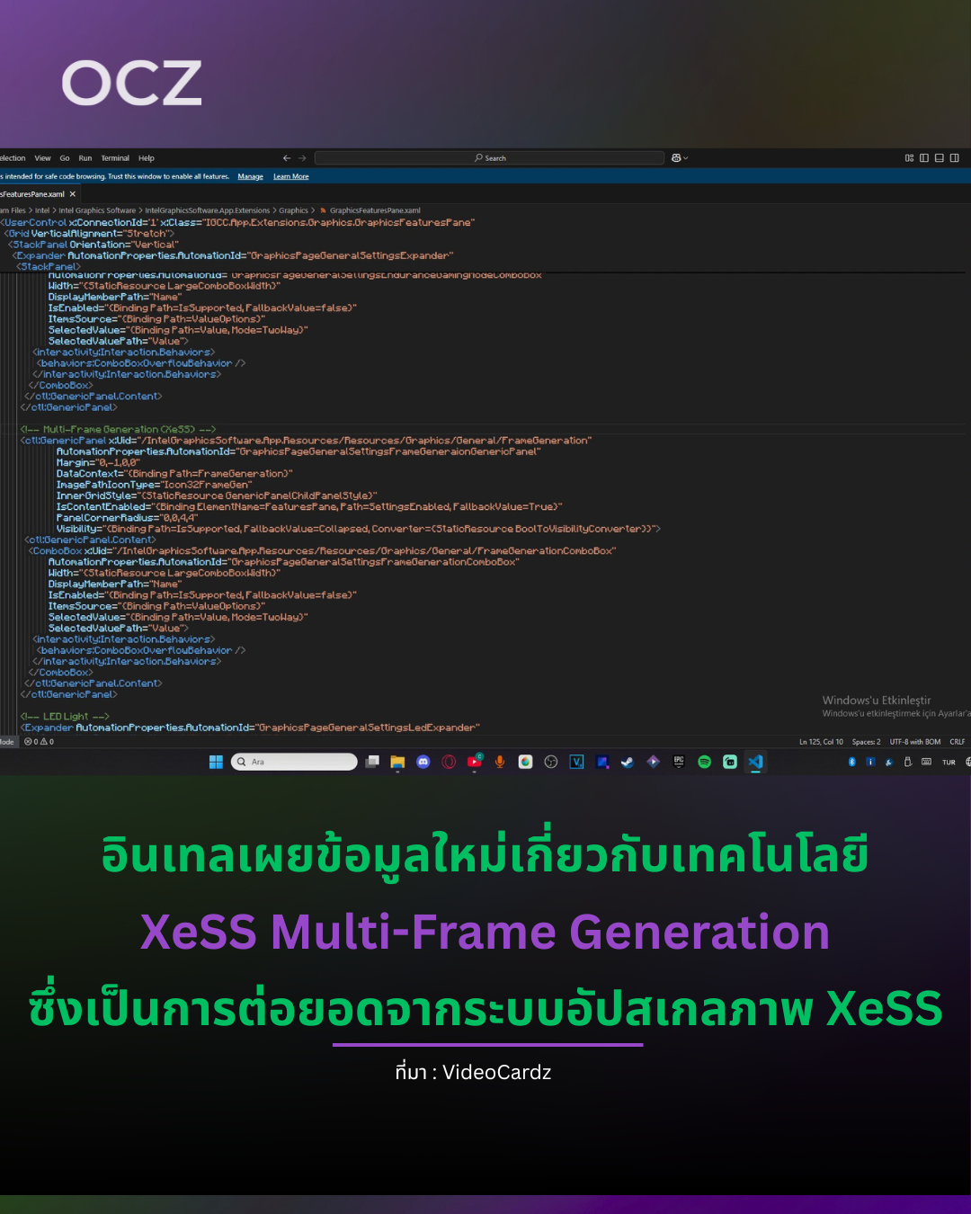 เนื่องจากสแต็ก XeSS ของอินเทลไม่ได้จำกัดเฉพาะฮาร์ดแวร์ของ Intel ฟีเจอร์ Multi-Frame Generation ที่อินเทลกำลังแง้มข้อมูลในไฟล์ล่าสุด อาจสามารถใช้กับการ์ดจออื่น ๆ ได้เช่นกัน