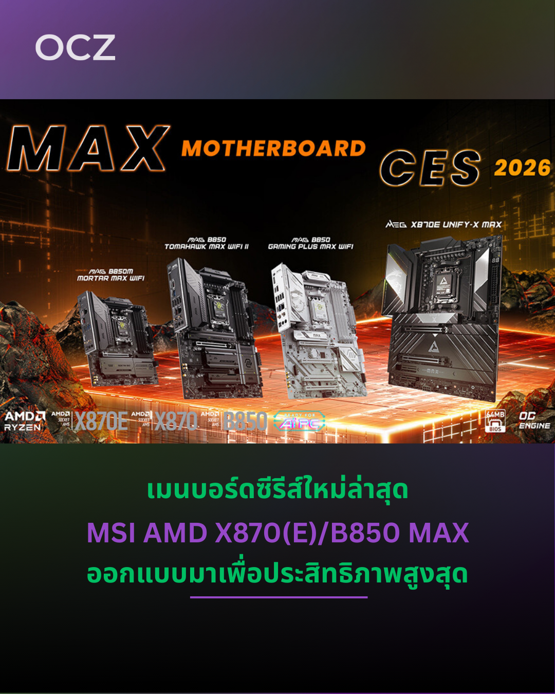 MSI นำเมนบอร์ดซีรีส์ AMD MAX รุ่นใหม่ล่าสุดไปโชว์ที่งาน CES ครอบคลุมทั้งชิปเซ็ต X870(E) และ B850