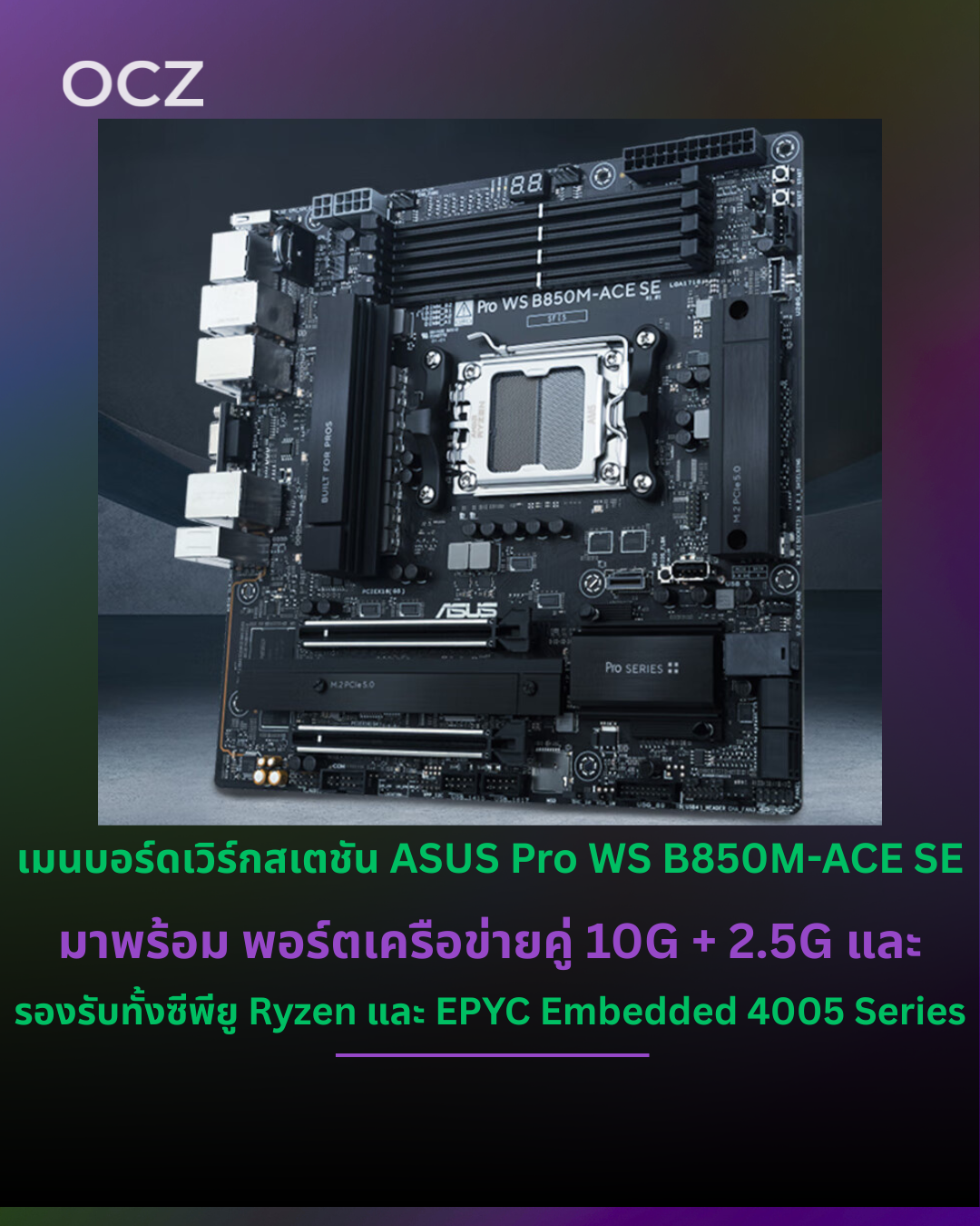 เมนบอร์ดเวิร์กสเตชันระดับ MSDT ของ ASUS รุ่น Pro WS B850M-ACE SE ซึ่งเปิดตัวครั้งแรกในงาน Computex Taipei 2025 เมื่อเดือนพฤษภาคม ตอนนี้วางจำหน่ายบน JD.com แล้วในราคา 4,499 หยวน พร้อมการรับประกัน 3 ปี