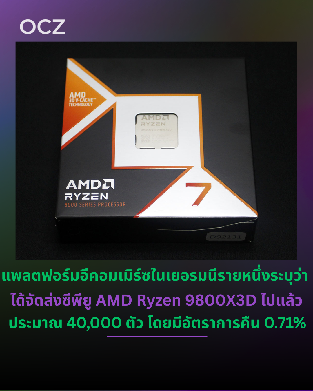 ในช่วงที่ผ่านมา มีรายงานหลายกรณีเกี่ยวกับ AMD Ryzen 7 9800X3D ที่เกิดความเสียหายหรือ “เสียสนิท” เมื่อใช้งานร่วมกับเมนบอร์ด ASUS และ ASRock จนสร้างความตื่นตระหนกในชุมชนผู้ใช้จำนวนมาก อย่างไรก็ตาม หากพิจารณาจากข้อมูลการคืนสินค้าของแพลตฟอร์มในเยอรมนีแล้ว กระแสความกังวลเหล่านี้อาจถูกขยายเกินจริงไปพอสมควร