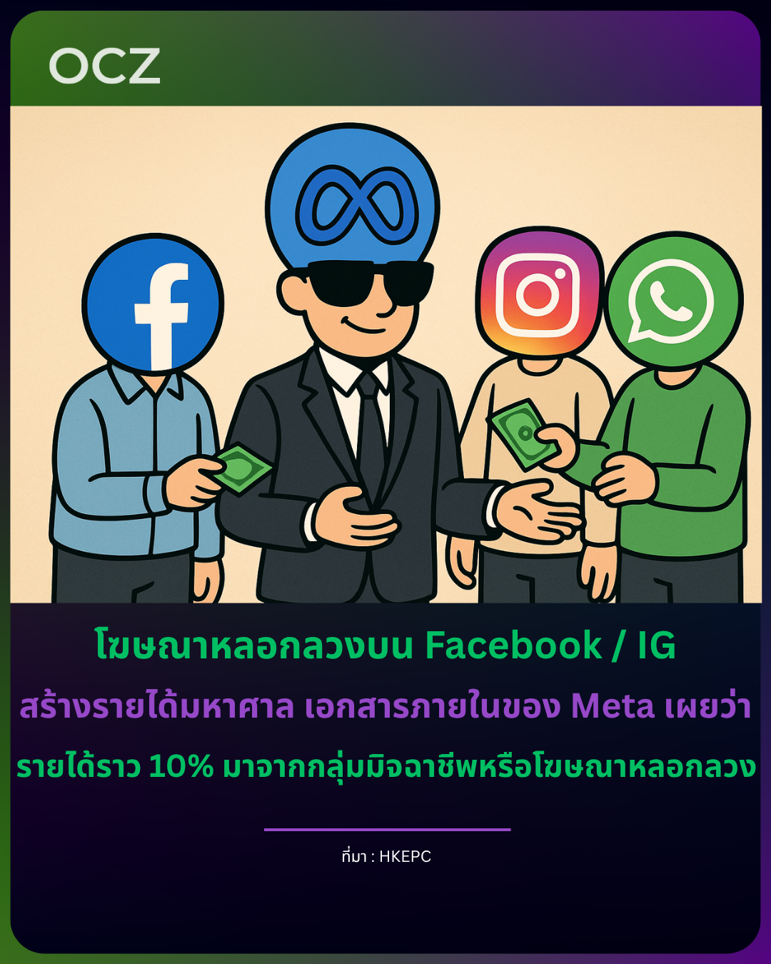 สื่อต่างประเทศรายงานว่า เอกสารภายในของ Meta เผยข้อมูลชวนช็อก — ในปี 2024 รายได้กว่า 16,000 ล้านดอลลาร์สหรัฐฯ (ราว 10% ของรายได้ทั้งหมด) มาจาก โฆษณาหลอกลวงและสินค้าผิดกฎหมาย ที่เผยแพร่บนแพลตฟอร์มในเครืออย่าง Facebook, Instagram และ WhatsApp