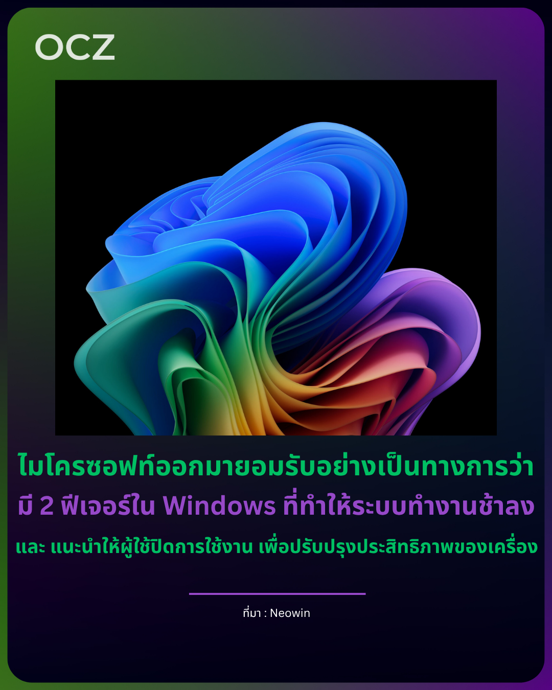 ควร “ปิด OneDrive Sync ชั่วคราว” และ “ปิด Visual Effects” จะช่วยให้เครื่องเบาขึ้นอย่างเห็นได้ชัด