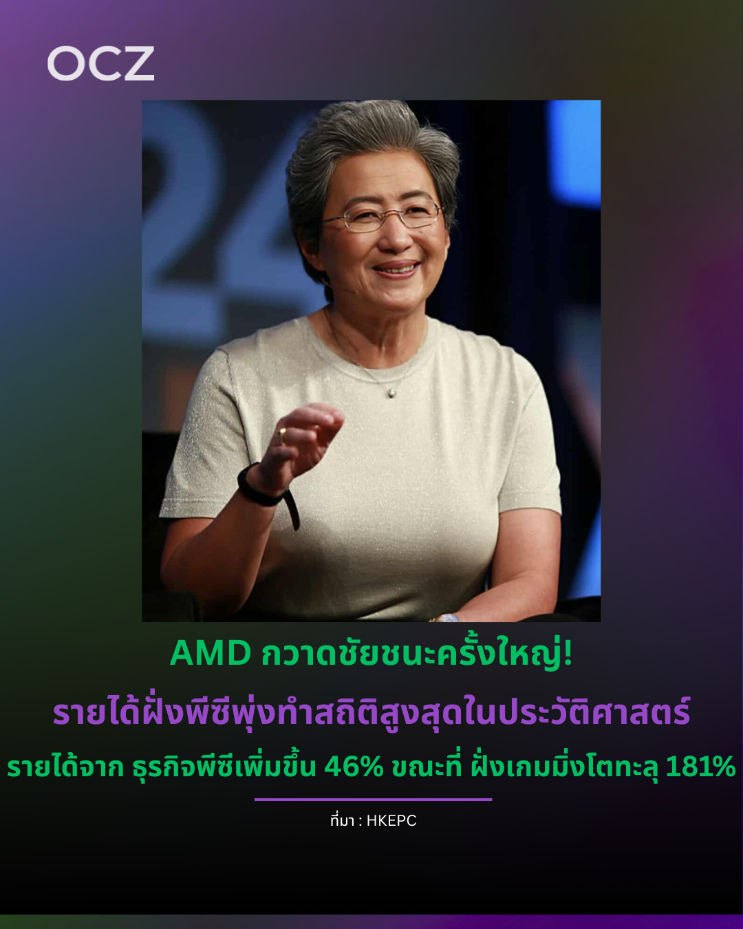 แรงหนุนหลักมาจากยอดขาย ซีพียู Ryzen รุ่นใหม่ ที่สร้างสถิติสูงสุด และการกระจายพอร์ตสินค้าที่กว้างขึ้น ทั้งในกลุ่มเดสก์ท็อปและโน้ตบุ๊ก ส่งผลให้ AMD สามารถ แย่งส่วนแบ่งตลาดจาก Intel ได้ต่อเนื่อง โดยเฉพาะในกลุ่มสินค้าระดับบนที่มีอัตรากำไรสูง