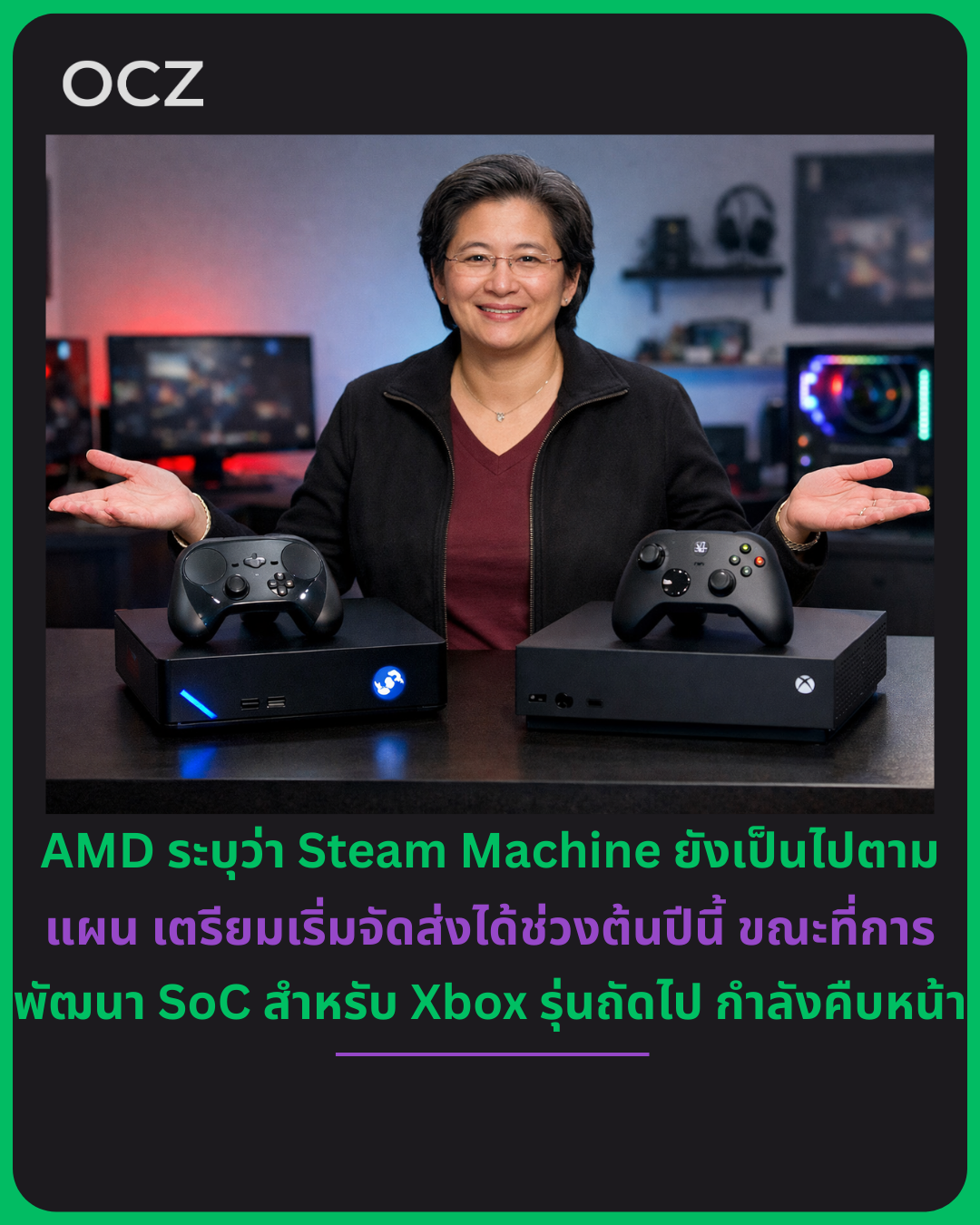ซูระบุว่า Valve ยังคงเป็นไปตามแผน และเตรียมเริ่มจัดส่ง Steam Machine ที่ใช้ชิปของ AMD ได้ในช่วงต้นปีนี้ แม้จะไม่ได้ให้รายละเอียดว่าช่วงเวลาแน่ชัดคือเมื่อใด