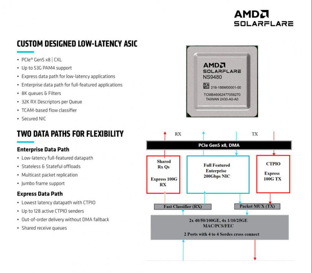 การ์ด AMD Solarflare X4 Ethernet Adapters ถือเป็นก้าวสำคัญของเครือข่ายความหน่วงต่ำ โดยเฉพาะสำหรับระบบเทรดและแอปพลิเคชันประสิทธิภาพสูงที่ต้องการความเร็วและประสิทธิผลสูงสุด