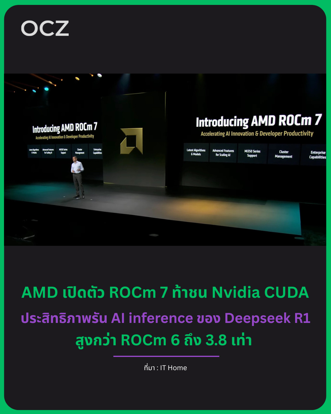 AMD เปิดตัว ROCm 7.0 เพื่อท้าทายการผูกขาดของ Nvidia CUDA ในสายงาน AI โดยในหน้าเว็บไซต์อย่างเป็นทางการของ AMD แสดงให้เห็นว่าเวอร์ชันใหม่นี้มาพร้อมกับ การรองรับอัลกอริทึมและโมเดลล่าสุด รวมถึงการขยายการรองรับ โปรเซสเซอร์ AMD Ryzen AI และ การ์ดจอ AMD Radeon อีกด้วย