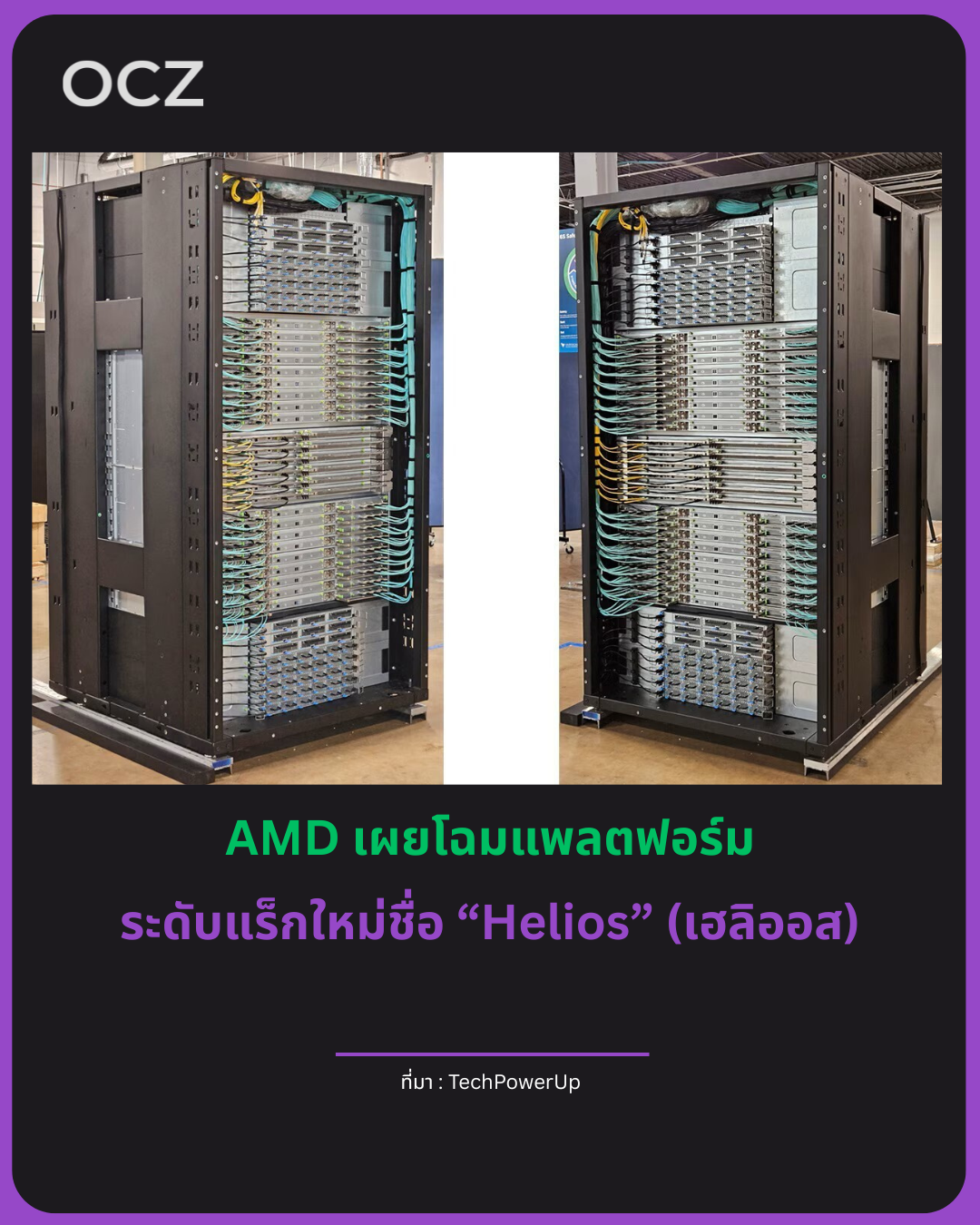 ในงาน Open Compute Project (OCP) Global Summit ที่เมืองซานโฮเซ รัฐแคลิฟอร์เนีย บริษัท AMD ได้เปิดเผยแพลตฟอร์มระดับแร็ก (rack-scale platform) รุ่นใหม่ชื่อว่า “Helios” (เฮลิออส) ต่อสาธารณะเป็นครั้งแรก โดยพัฒนาตามสเปกใหม่ Open Rack Wide (ORW) ที่นำเสนอโดย Meta แพลตฟอร์ม Helios นี้ถือเป็นการต่อยอดแนวคิด “ฮาร์ดแวร์เปิด” (open hardware) ของ AMD จากระดับ ซิลิคอน → ระบบ → แร็ก ซึ่งนับเป็นอีกก้าวสำคัญของการสร้างโครงสร้างพื้นฐาน AI แบบเปิดและทำงานร่วมกันได้ (interoperable AI infrastructure)