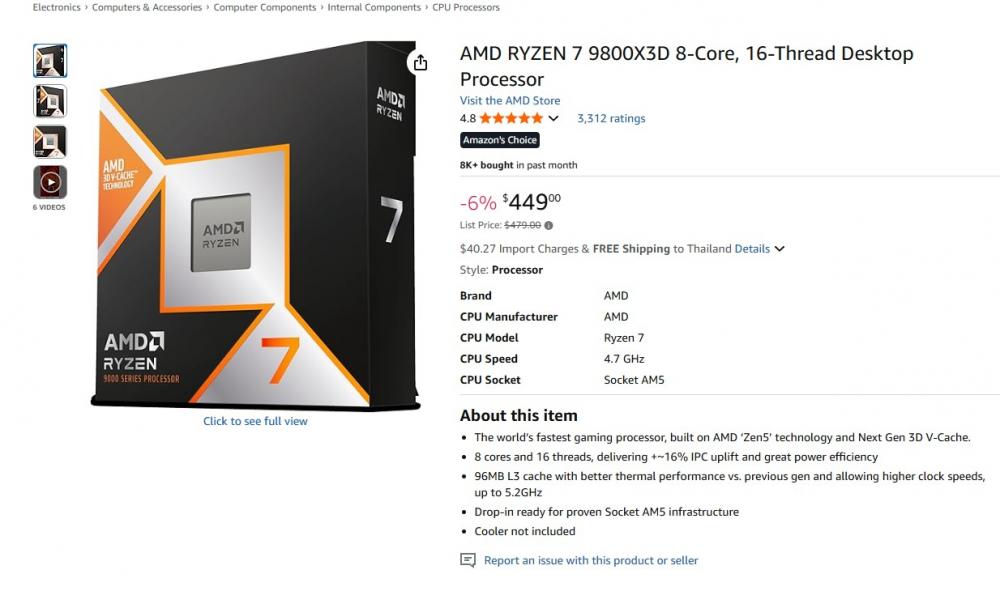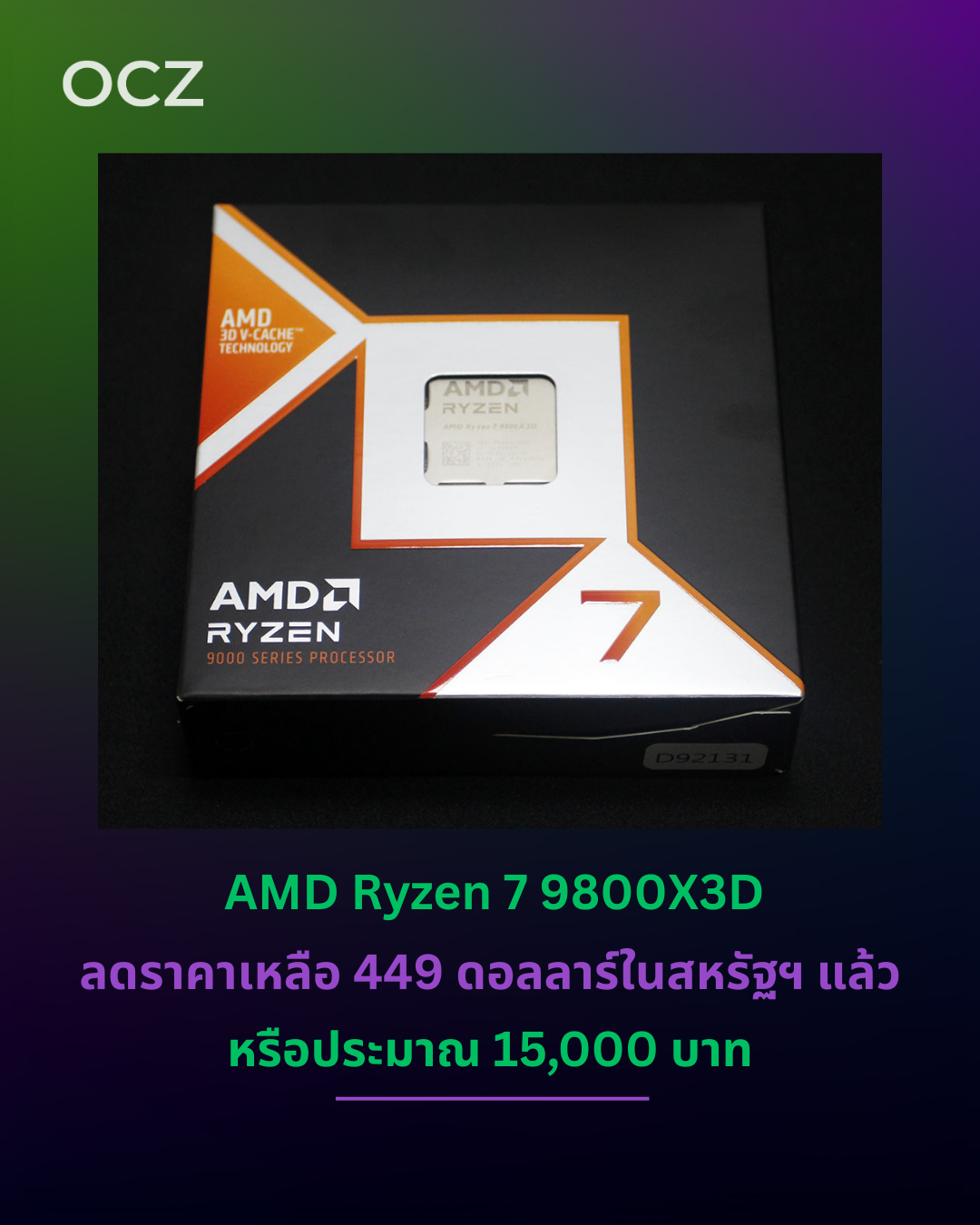 AMD Ryzen 7 9800X3D ได้รับการปรับลดราคาครั้งใหญ่ครั้งแรกในสหรัฐฯ จากราคาเปิดตัว 479 ดอลลาร์ เหลือเพียง 449 ดอลลาร์ ที่ร้านค้าหลักอย่าง Amazon ซึ่งถือเป็นการปรับราคาที่หลายคนคาดไว้หลังจากราคาฝั่งยุโรปและสหราชอาณาจักรลดลงต่อเนื่องจนต่ำกว่า 449 ปอนด์ และมีดีลที่เหลือเพียงราว 399 ปอนด์ มาแล้ว