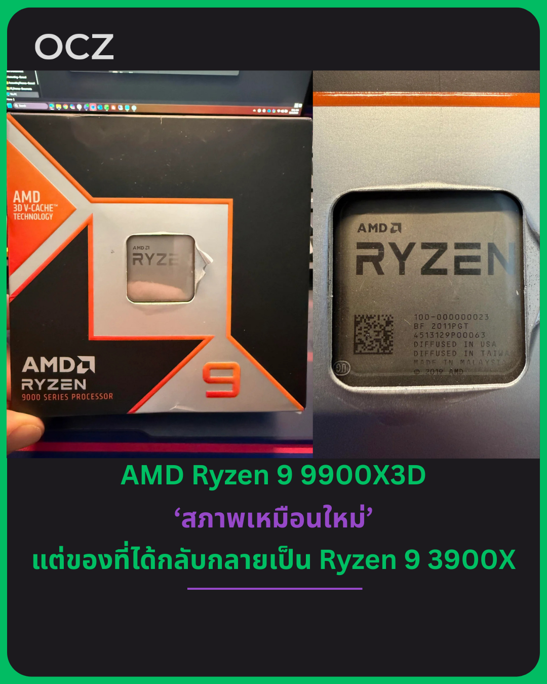 ผู้ใช้ Reddit รายหนึ่งระบุว่าเขาซื้อซีพียู AMD Ryzen 9 9900X3D แบบ “Used – Like New” จาก Amazon ในราคาลดหนัก แต่เชื่อว่าซีพียูภายในกล่องถูกสลับก่อนนำกลับมาขายต่อ